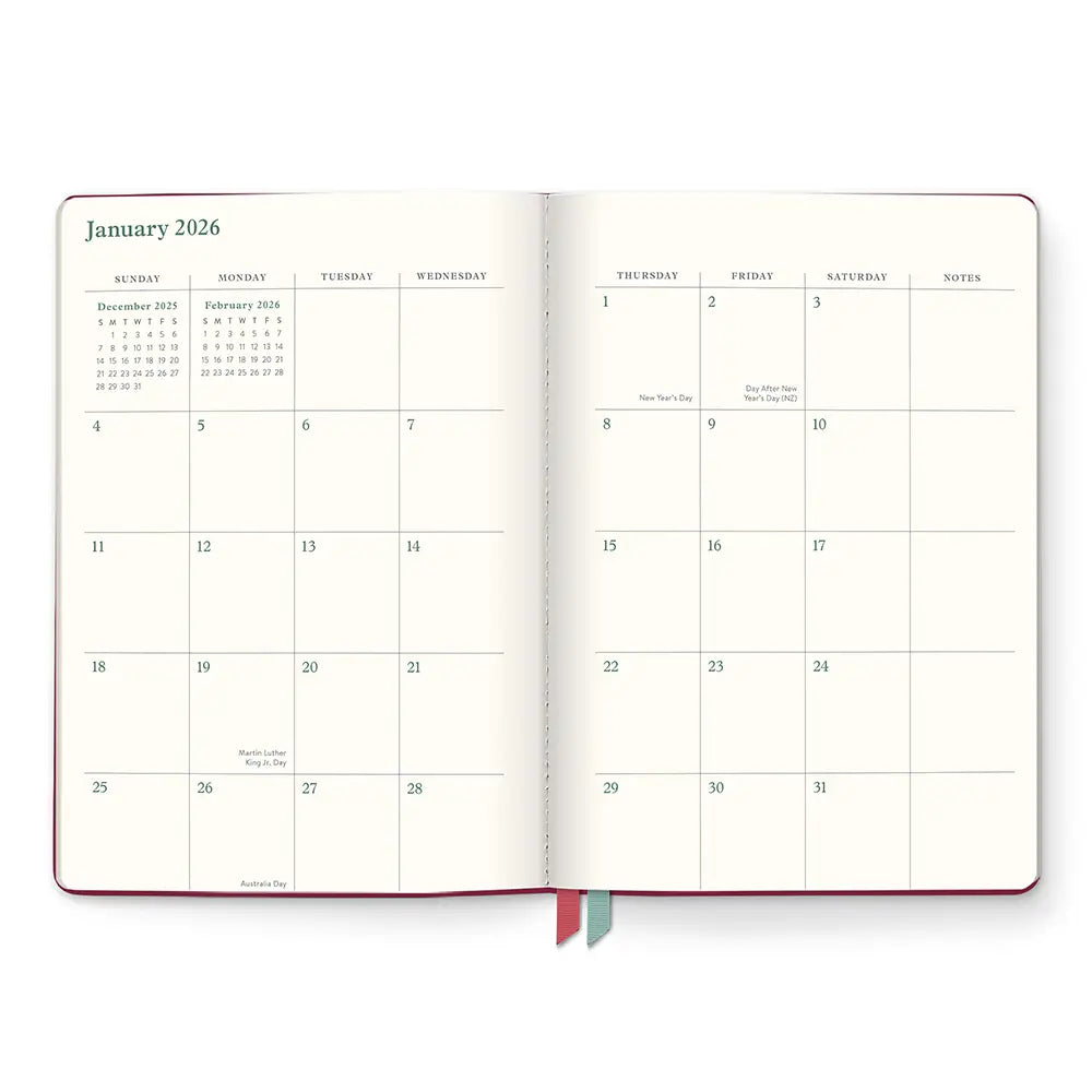 Introducing the Clara Clothbound Planner by Orange Circle Studio—a blend of elegance and practicality. Its sophisticated cloth cover offers a soft, luxurious feel, setting it apart from the ordinary planner. Inside, you'll find dedicated space for goal setting, budget tracking, and dot-grid pages for all your notes and lists. Simple monthly and weekly layouts make it easy to plan both the big picture and day-to-day details. Coordinating ribbon page markers help you navigate seamlessly, while the planner’s compact size tucks effortlessly into your handbag, making it the perfect stylish companion for staying organized on the go.