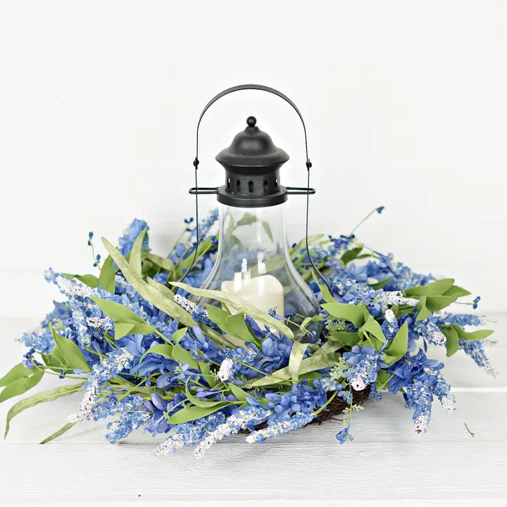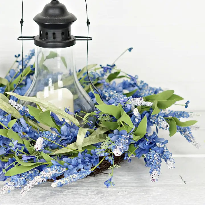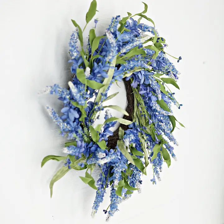 24in Twig Wreath Blue Bonnet Flowers with Heather