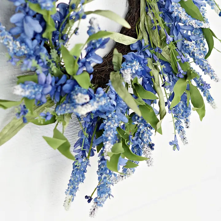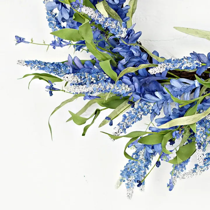 24in Twig Wreath-Blue Bonnet Flowers with Heather, Spring floral, Summer Floral, Farmhouse Decoration