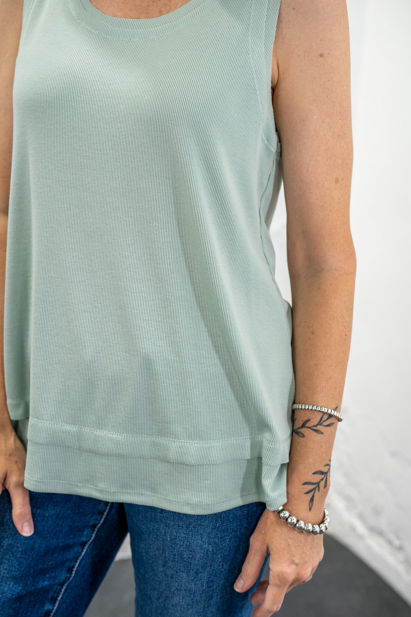 Adalyn Light Sage Soft Ribbed Tank - Final Sale!