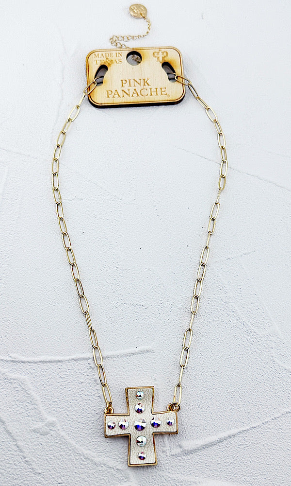 The Alena Collection is on fire! Gorgeous square crosses with leather inlays & accented with fiery iridescent swarovski crystals. The collection includes earrings & a necklace, sold separately.