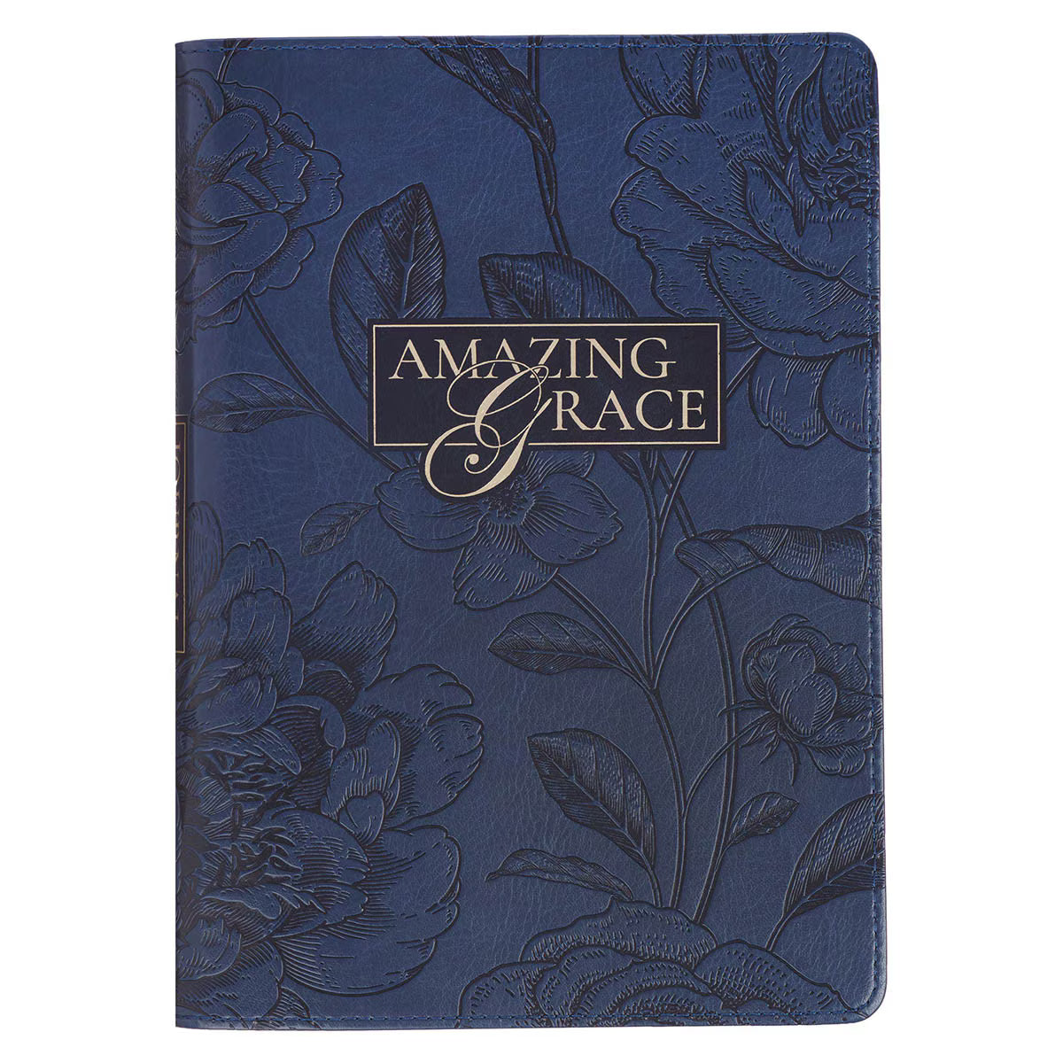 The Amazing Grace Navy Blue Floral Faux Leather Classic Journal with Zipper Closure will elevate your writing experience with its beautiful floral design and heartwarming sentiment. Use it for school, work, church, or home—this journal is a great place to get your thoughts on paper and remember and reflect on God's goodness.