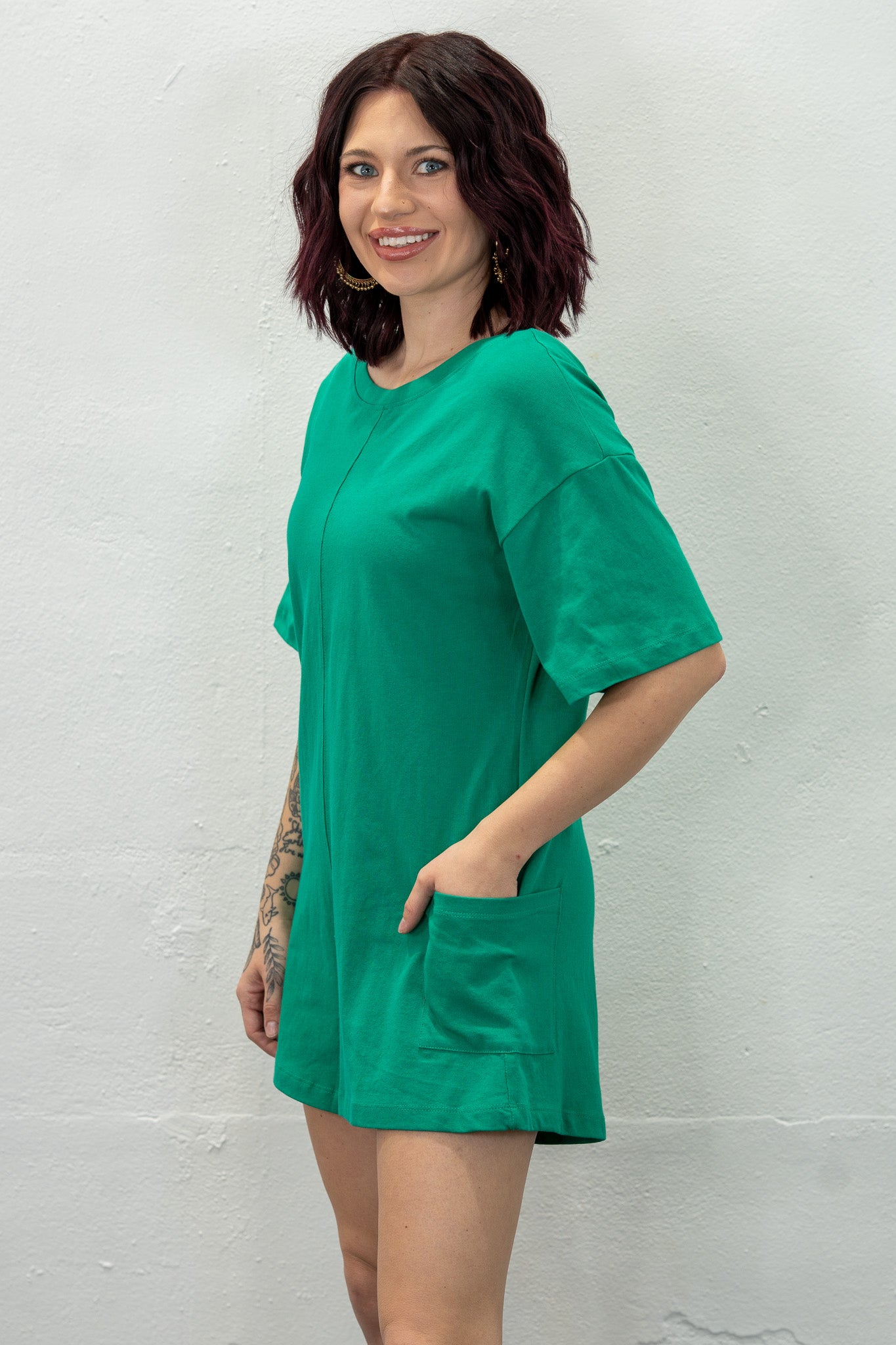This romper is completely reversible. V-neck one way, scoop the other! It has POCKETS!!