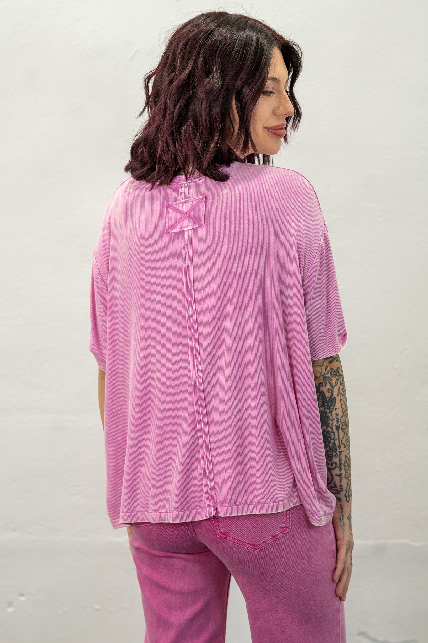 Ribbed fabric with an already worn, comfy feel! This top will be the one you constantly find yourself reaching for!
