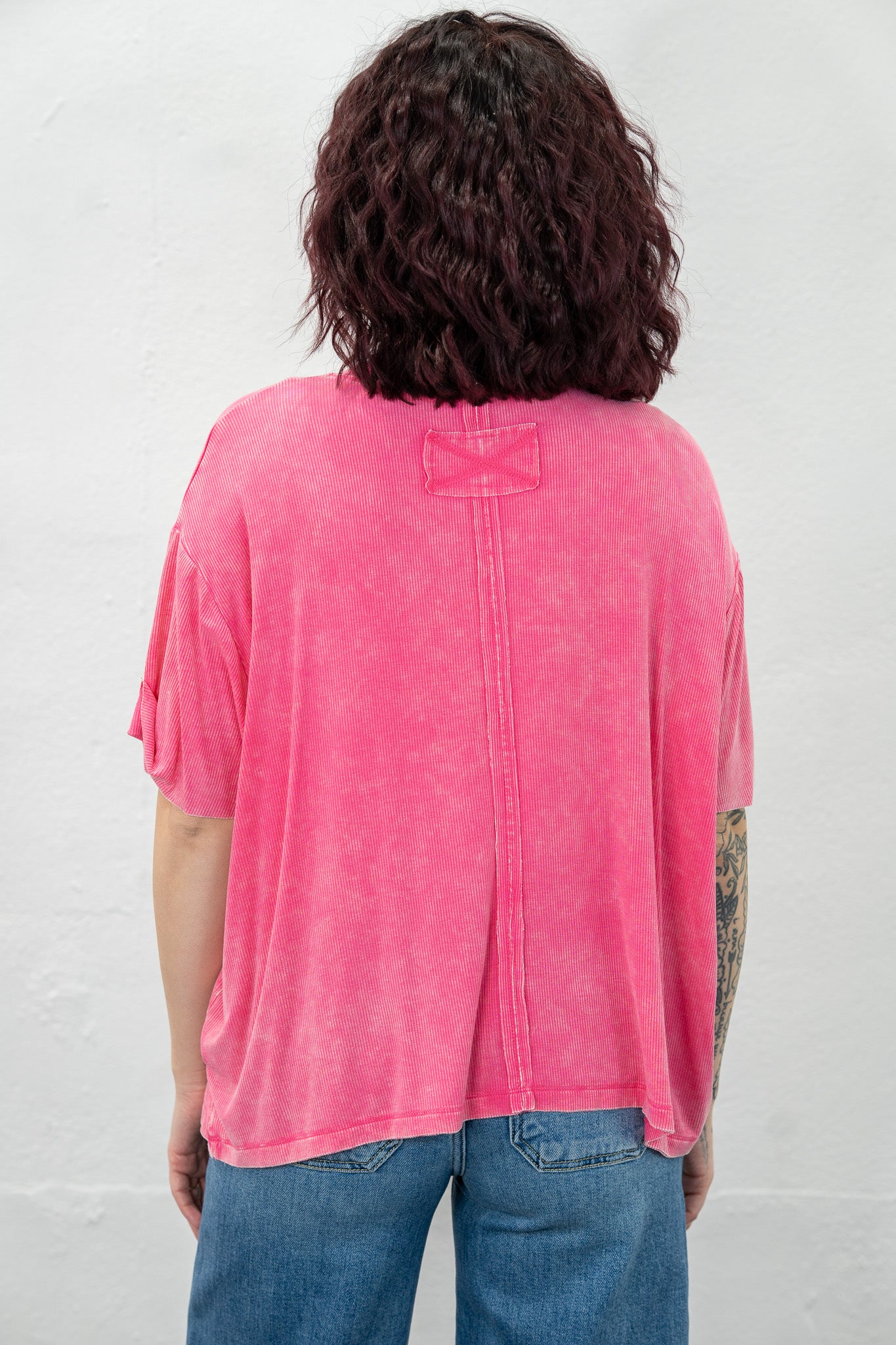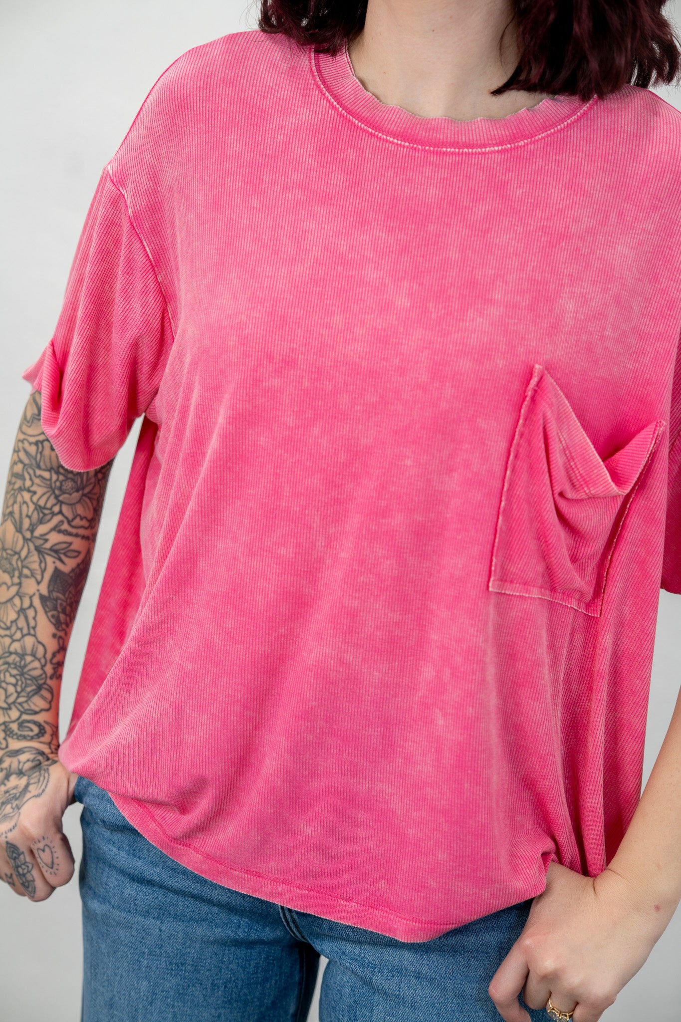 Ribbed fabric with an already worn, comfy feel! This top will be the one you constantly find yourself reaching for!