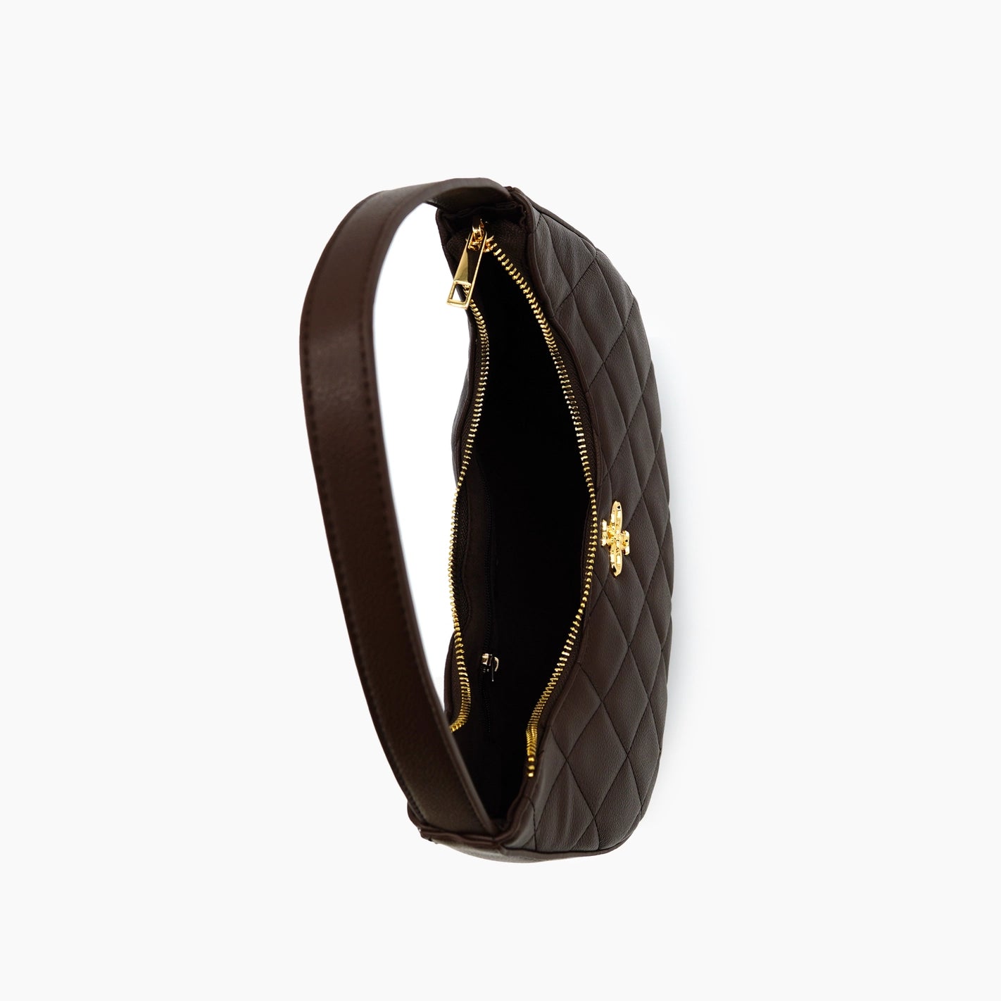 Elevate your every day with the Isolde. This vegan leather shoulder bag is a purse that speaks to understated luxury with its sophisticated quilted patterning and gold hardware detailing.
