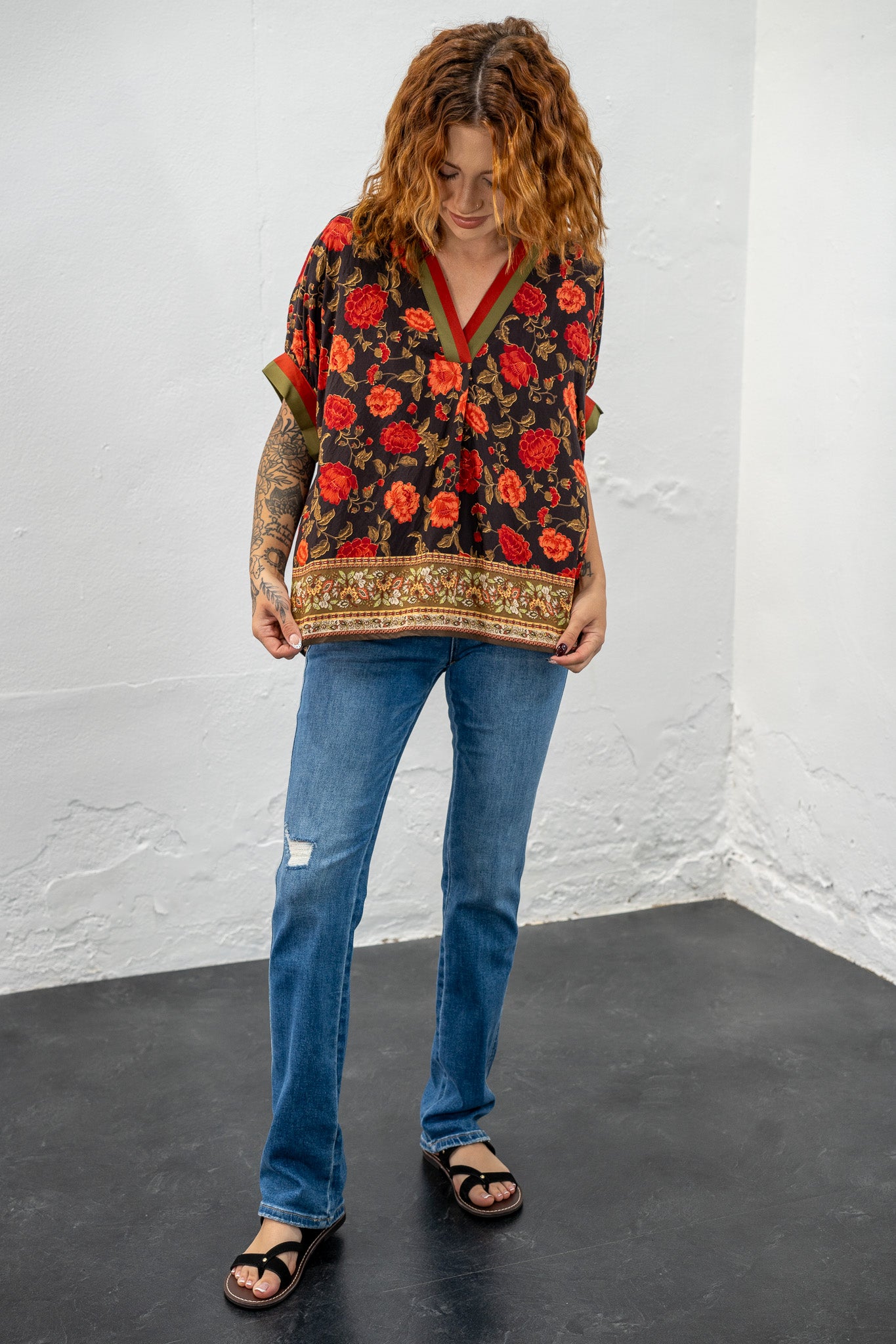 Ava is one of a kind!! Colorblock trim accents and mixed prints.. what's not to love?!