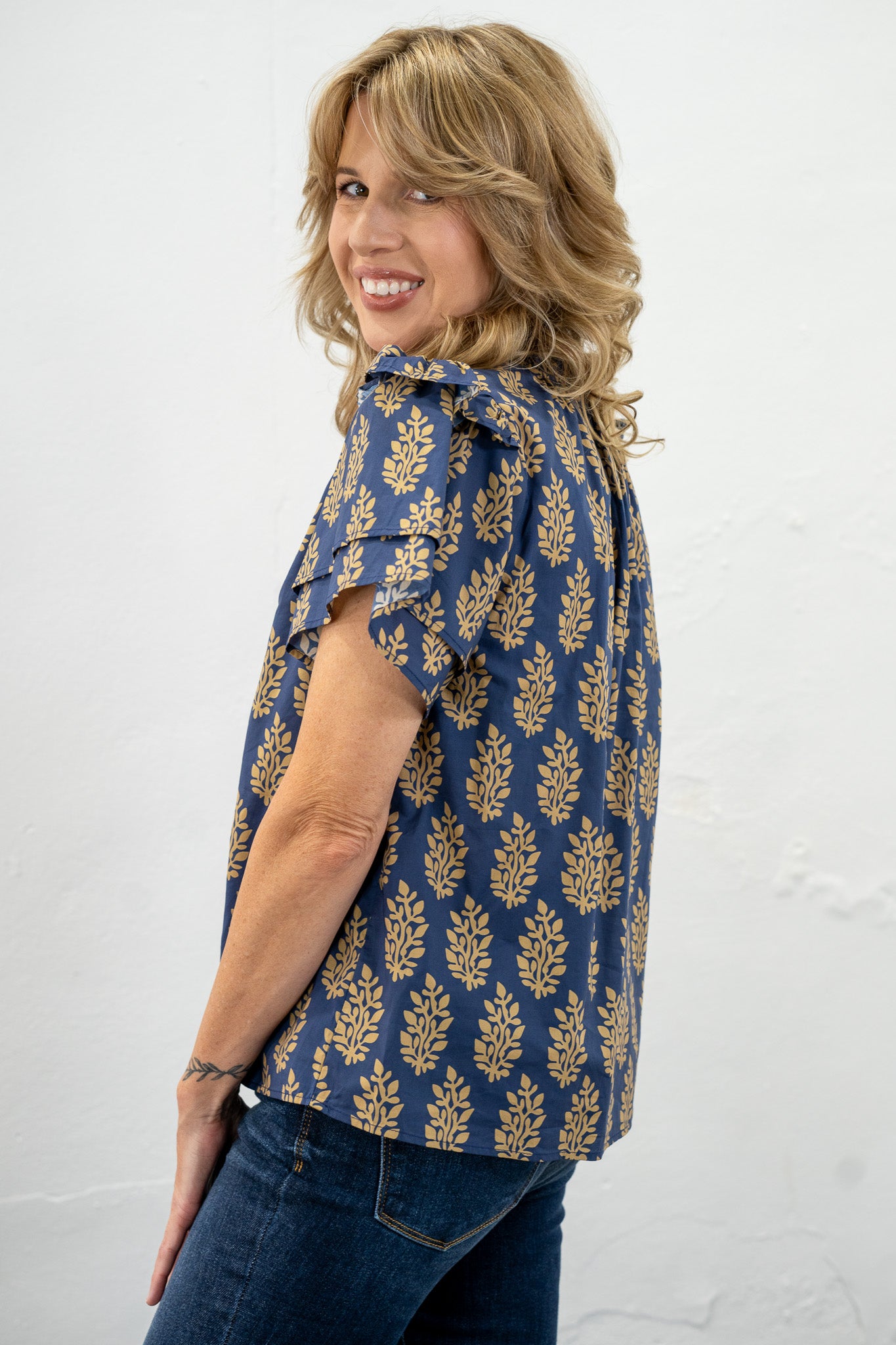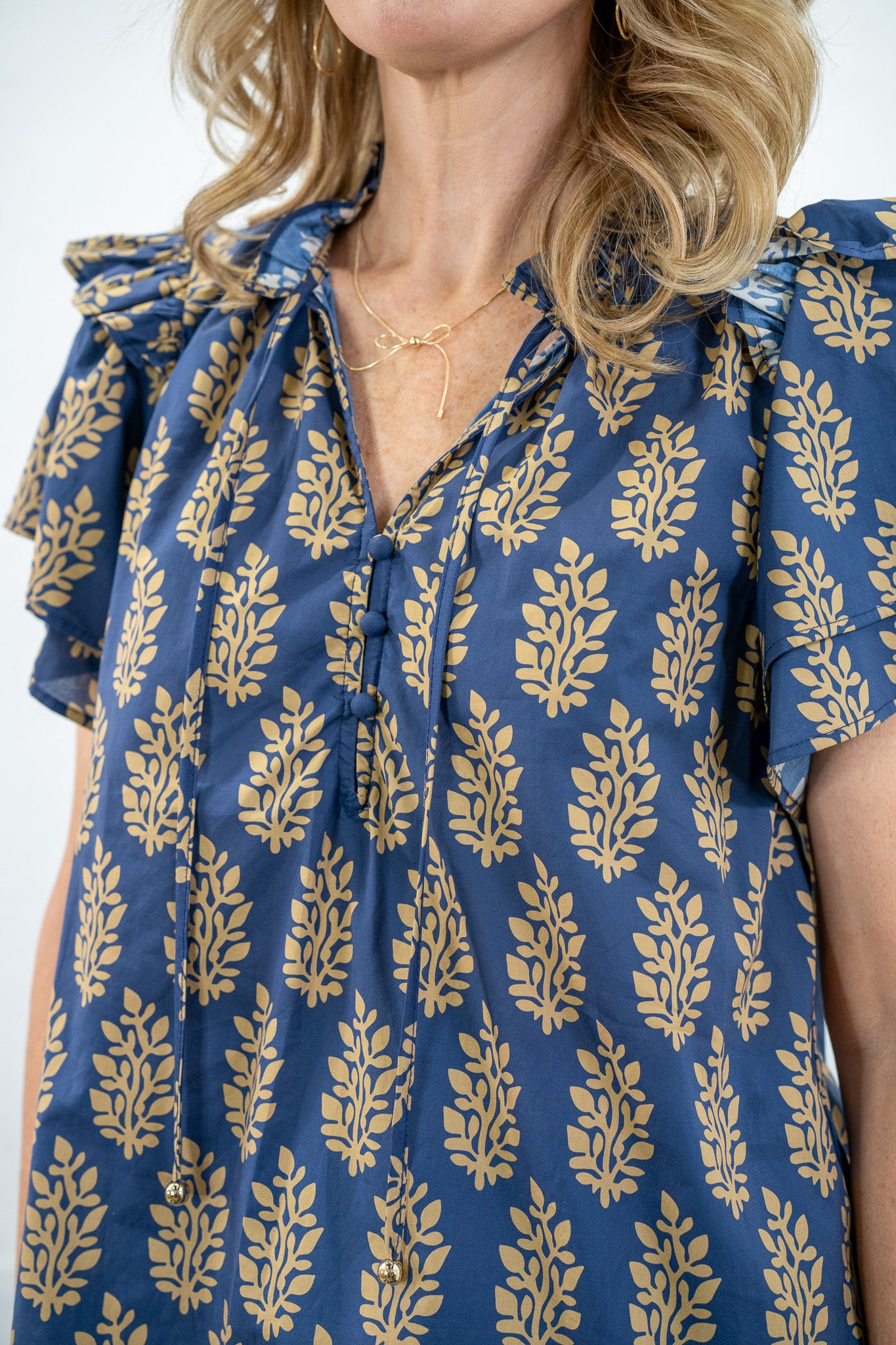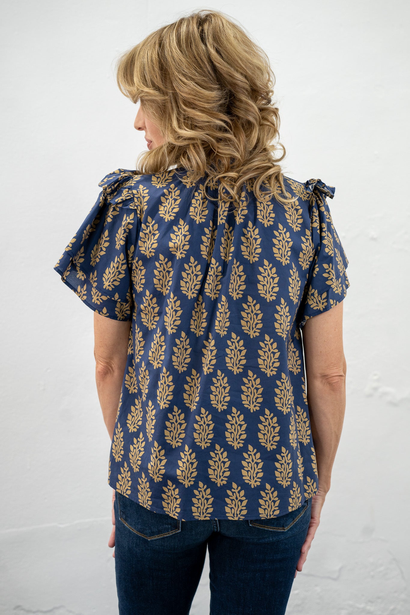 The cutest flutter shoulder, neck tie and just look at the print.. it's so unique and timeless!