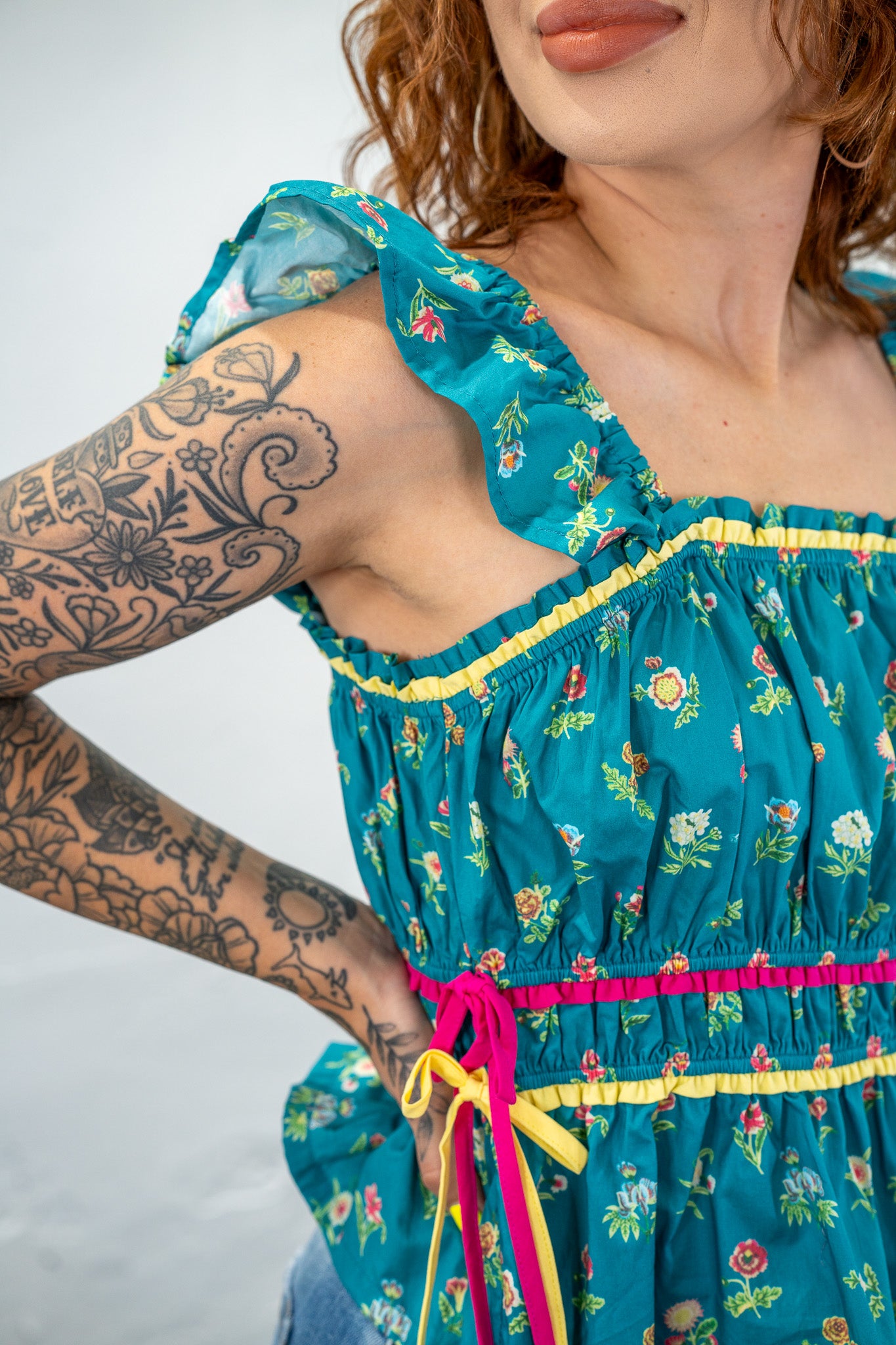 The details are wear it's at with this stunning top. Ruffle design with elastic around the waist, shoulder straps and neckline. Easy to wear and style.