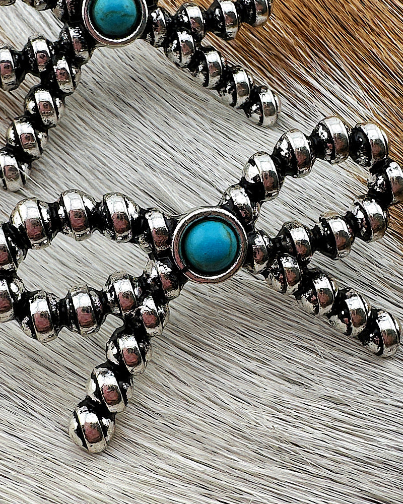Our dotted collection keep getting bigger & bigger. It's got those designer feels & a modern edge to it. Each piece is thoughtfully crafted & sure to be a favorite in your jewelry wardrobe. Belle is accented with a turquoise stone.