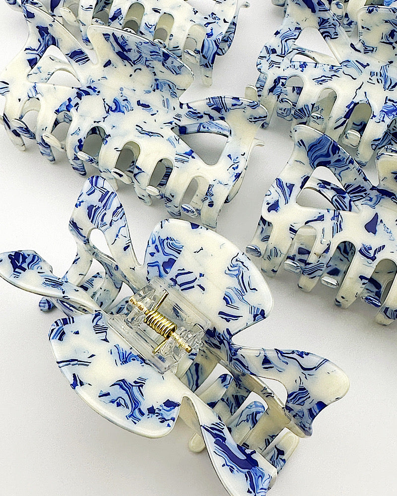 The prettiest blue & off white hair clip. The perfect "anything but basic" claw clip. Lightweight acrylic claw clip, 3-1/2"