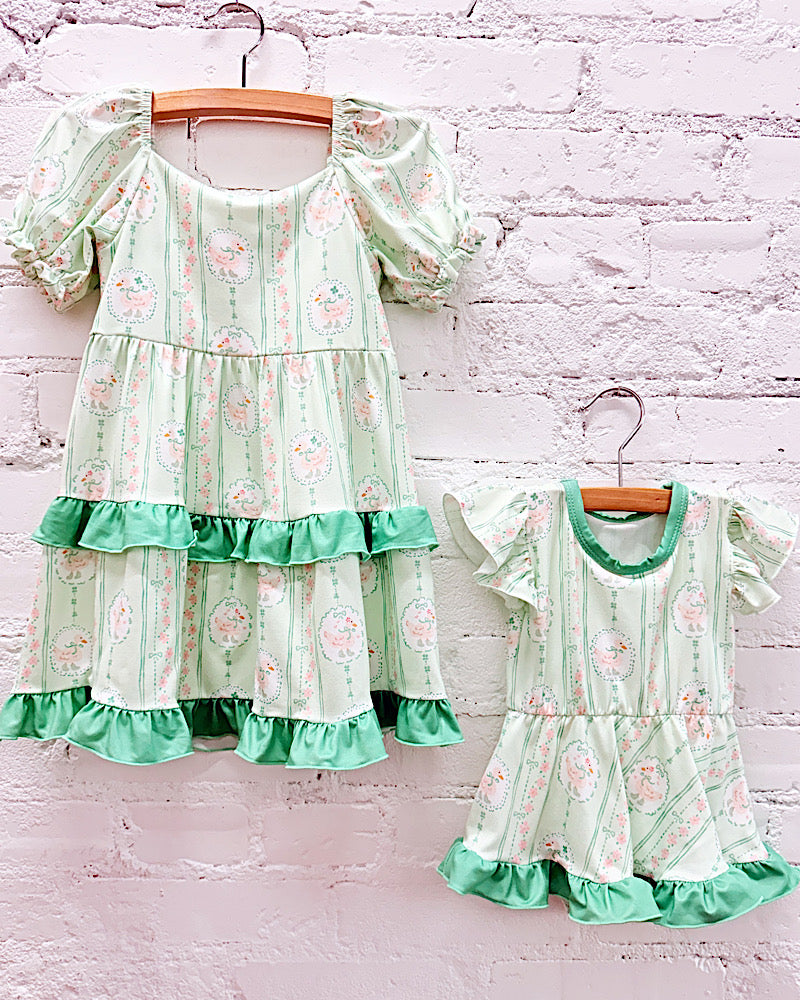 This collection blends timeless charm with playful whimsy, featuring darling goose motifs dressed in dainty bows and soft, storybook details! Designed for little girls who love to twirl around, be silly and look oh-so-sweet while doing it!
