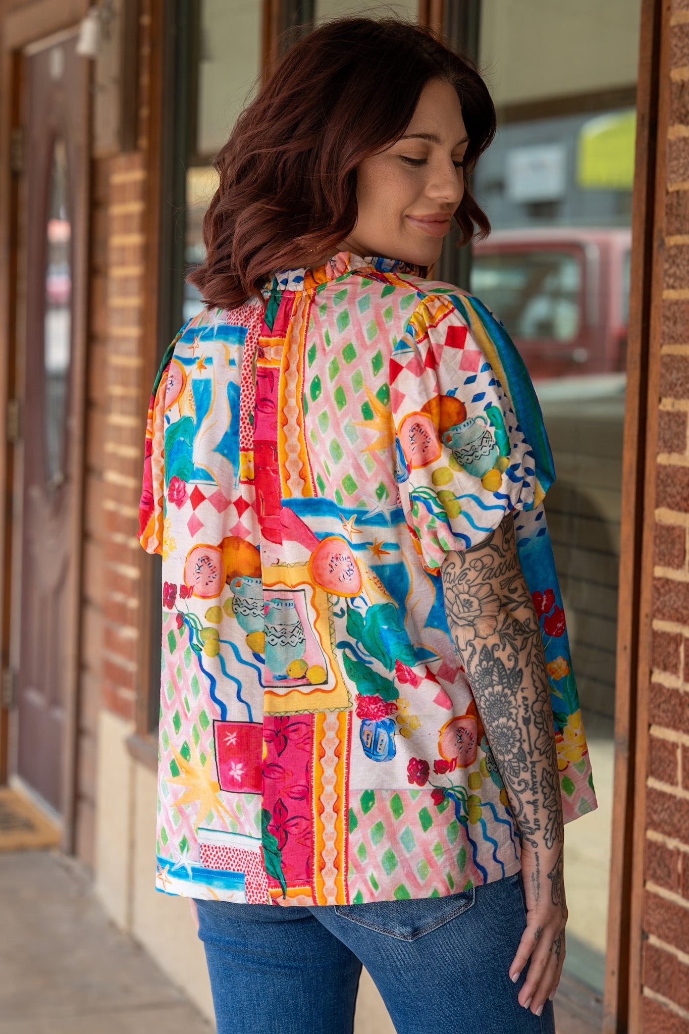 The Bright Bonita Bubble Sleeve Top is the perfect blend of bold colors and feminine charm!