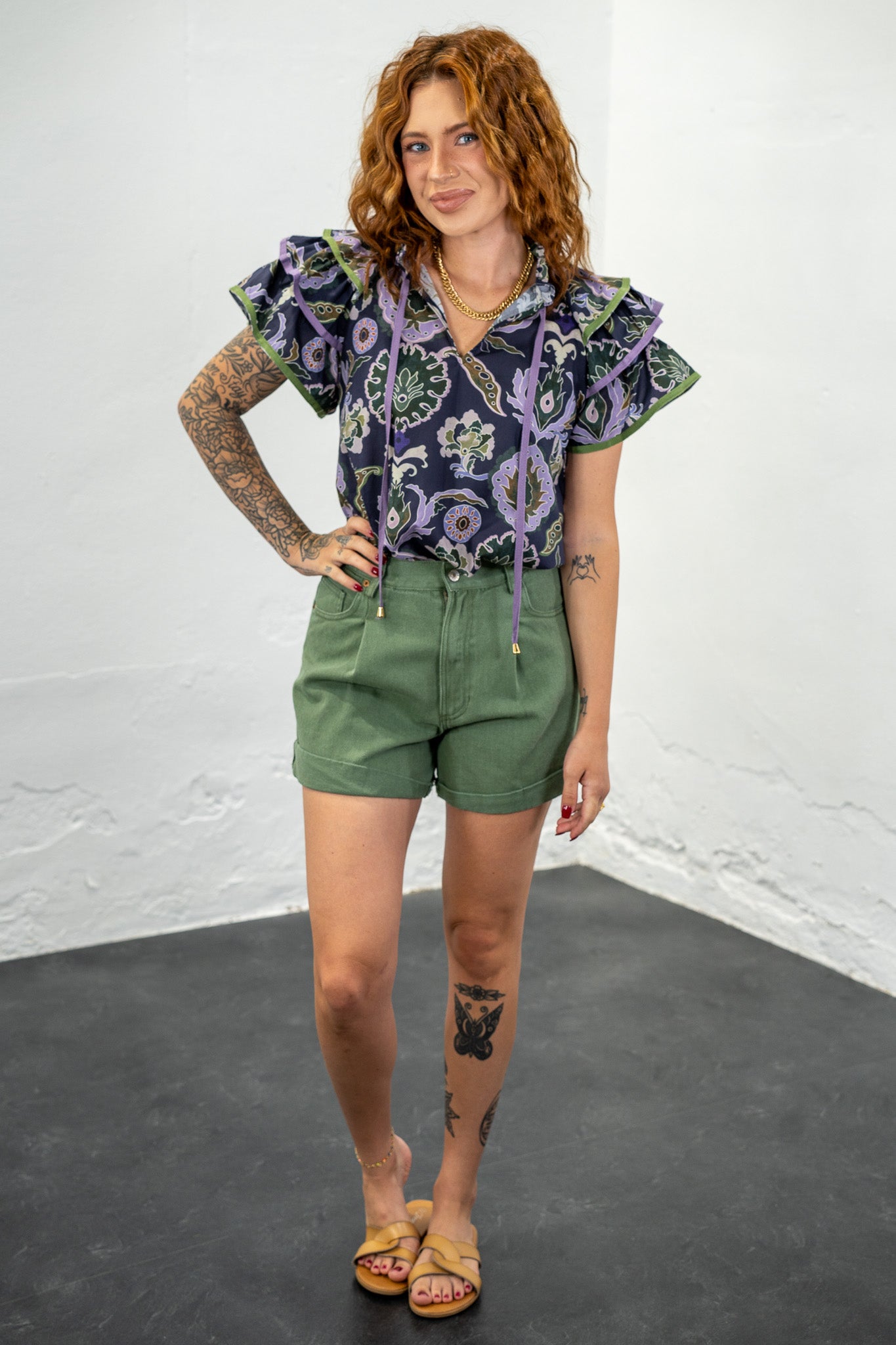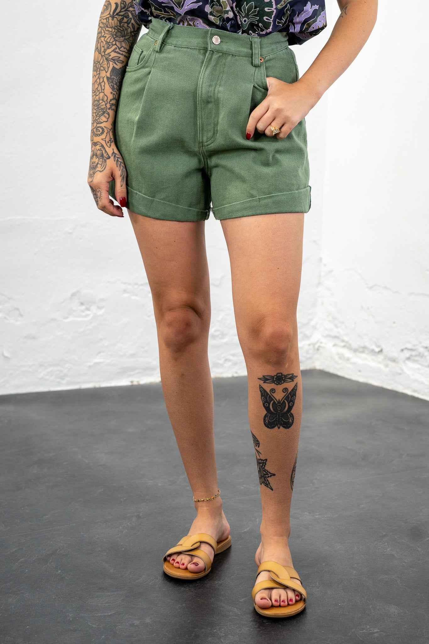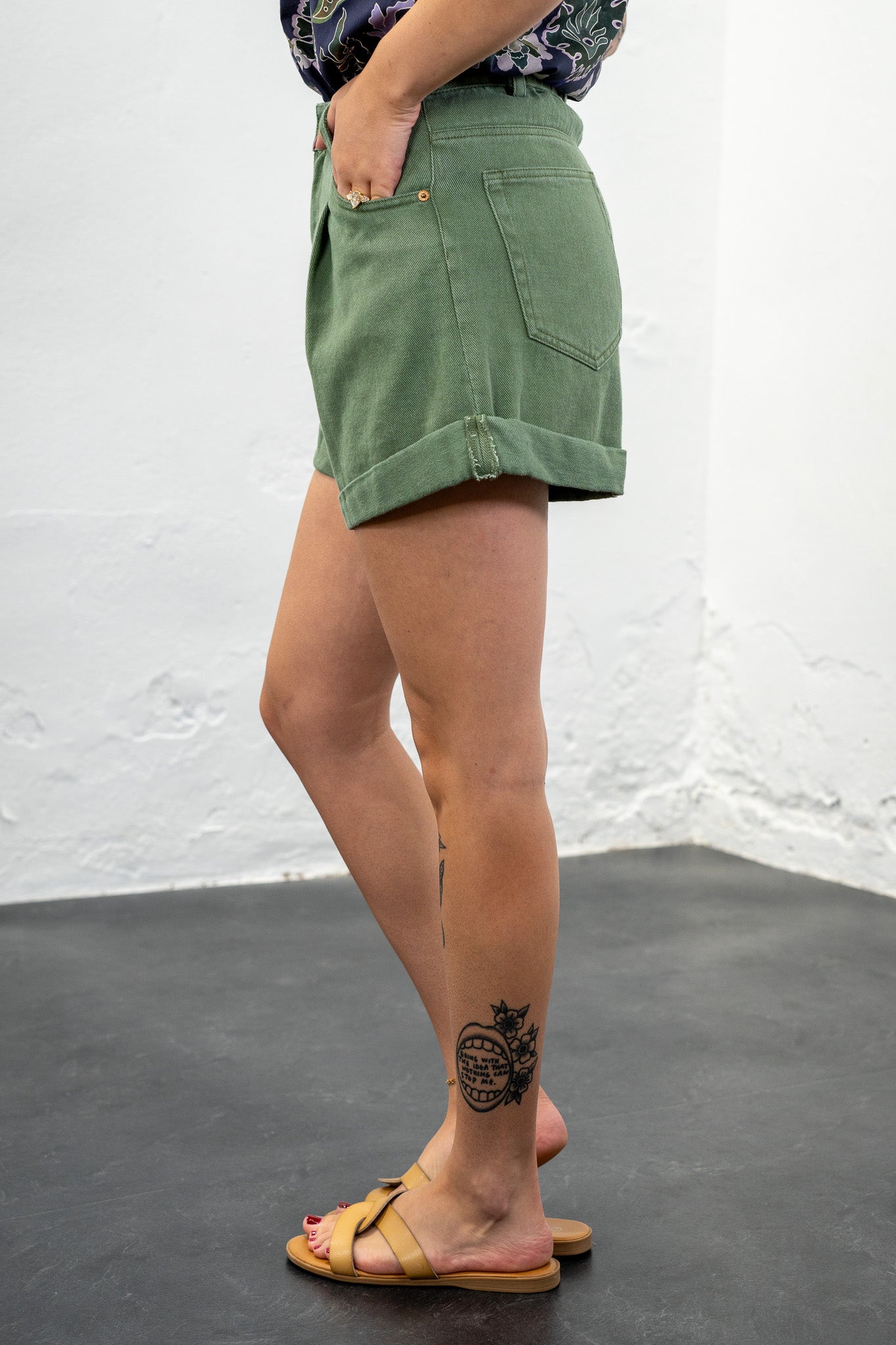 Calyn Olive Cuffed Shorts