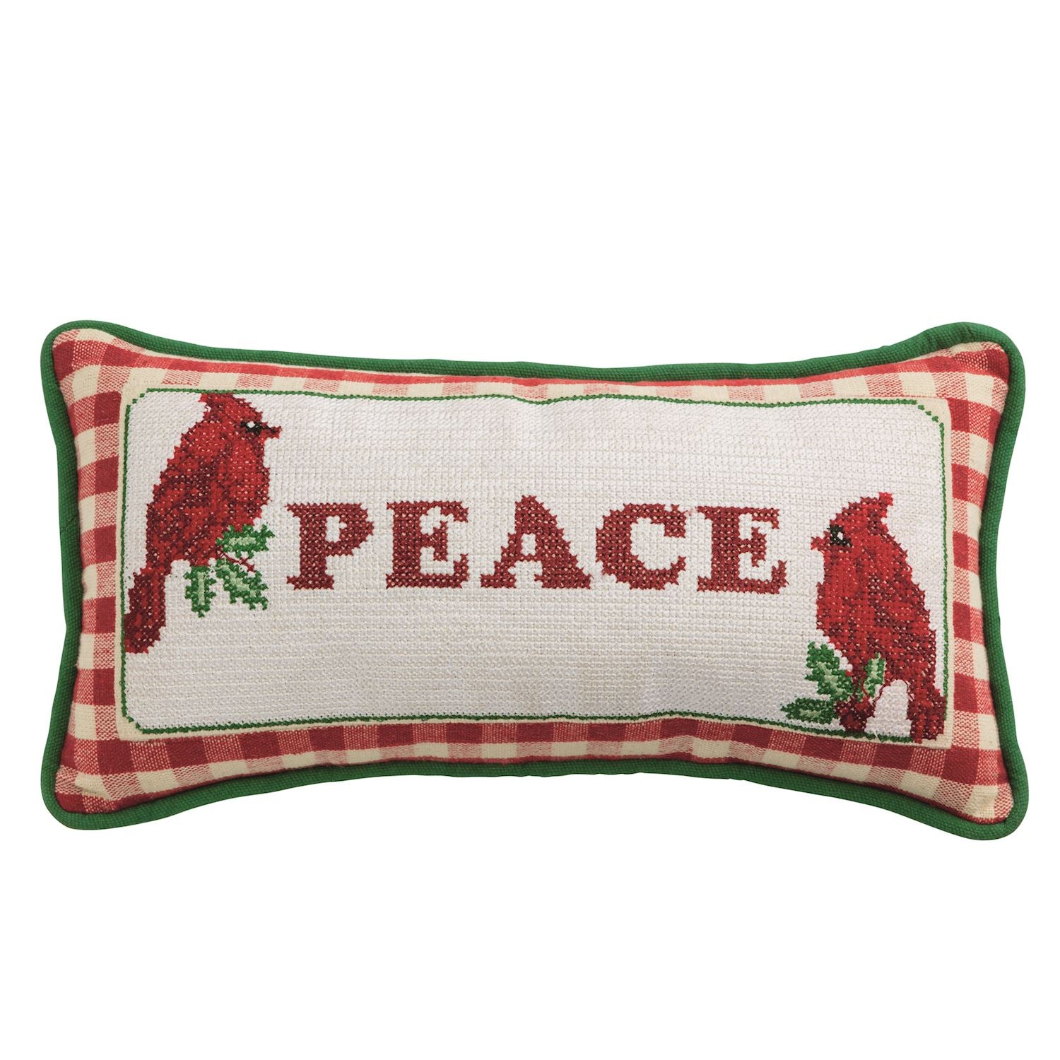 Cotton pillow features needlepoint embroidery front panel and piped edge.