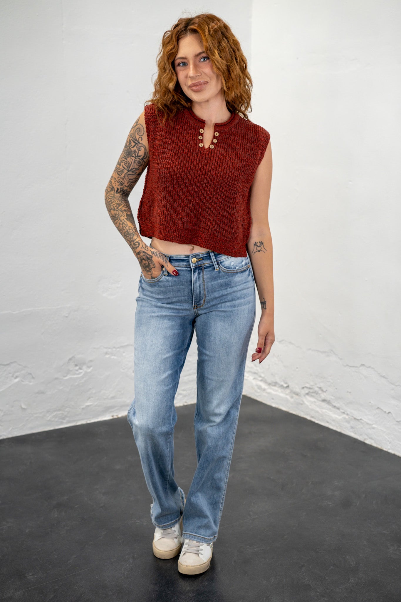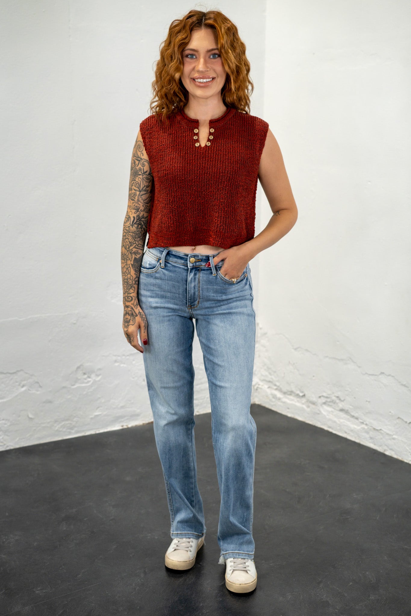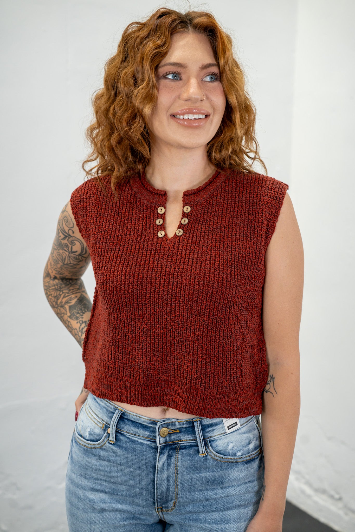 Carla Rust Split Neck Knit Top