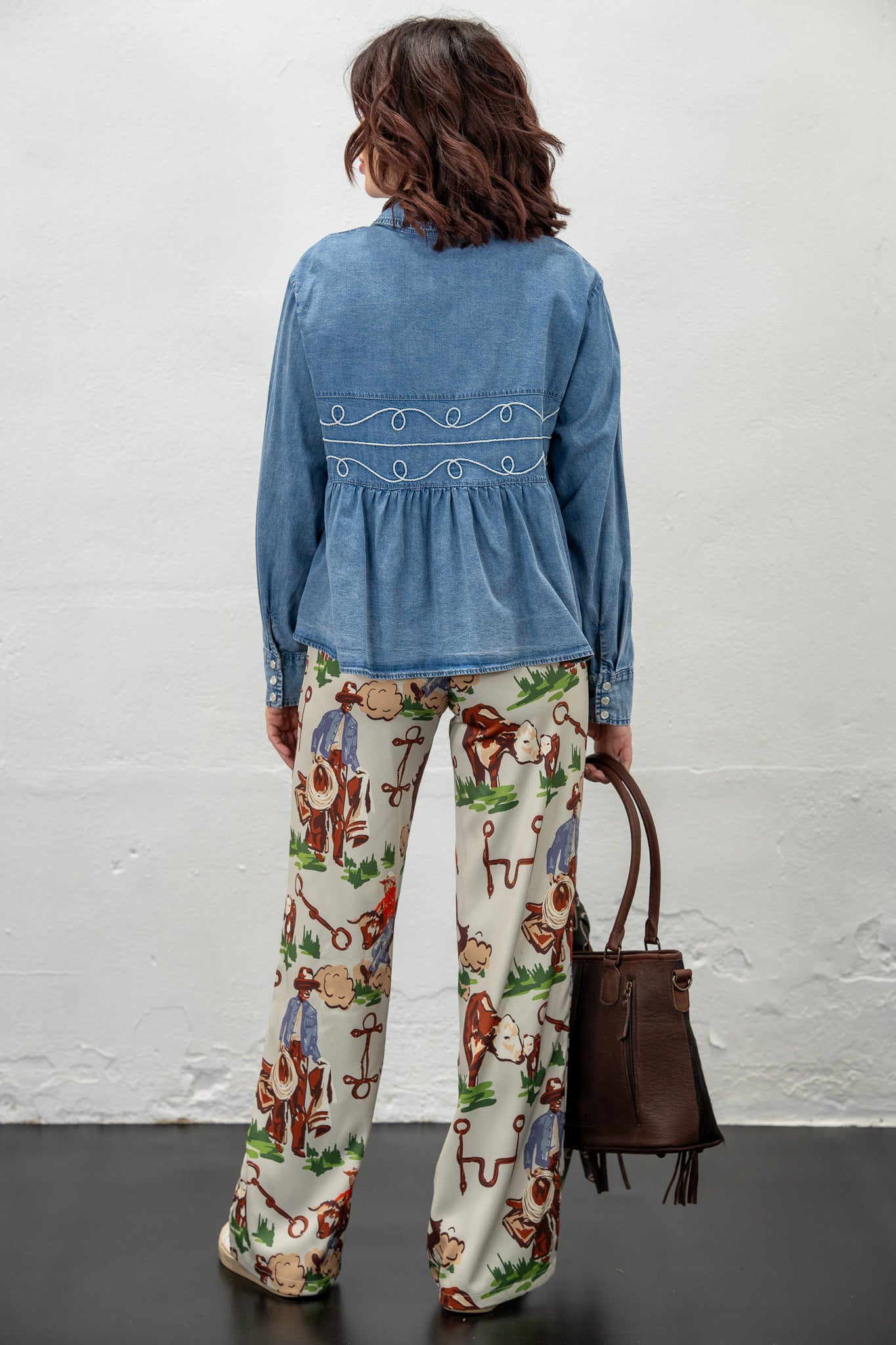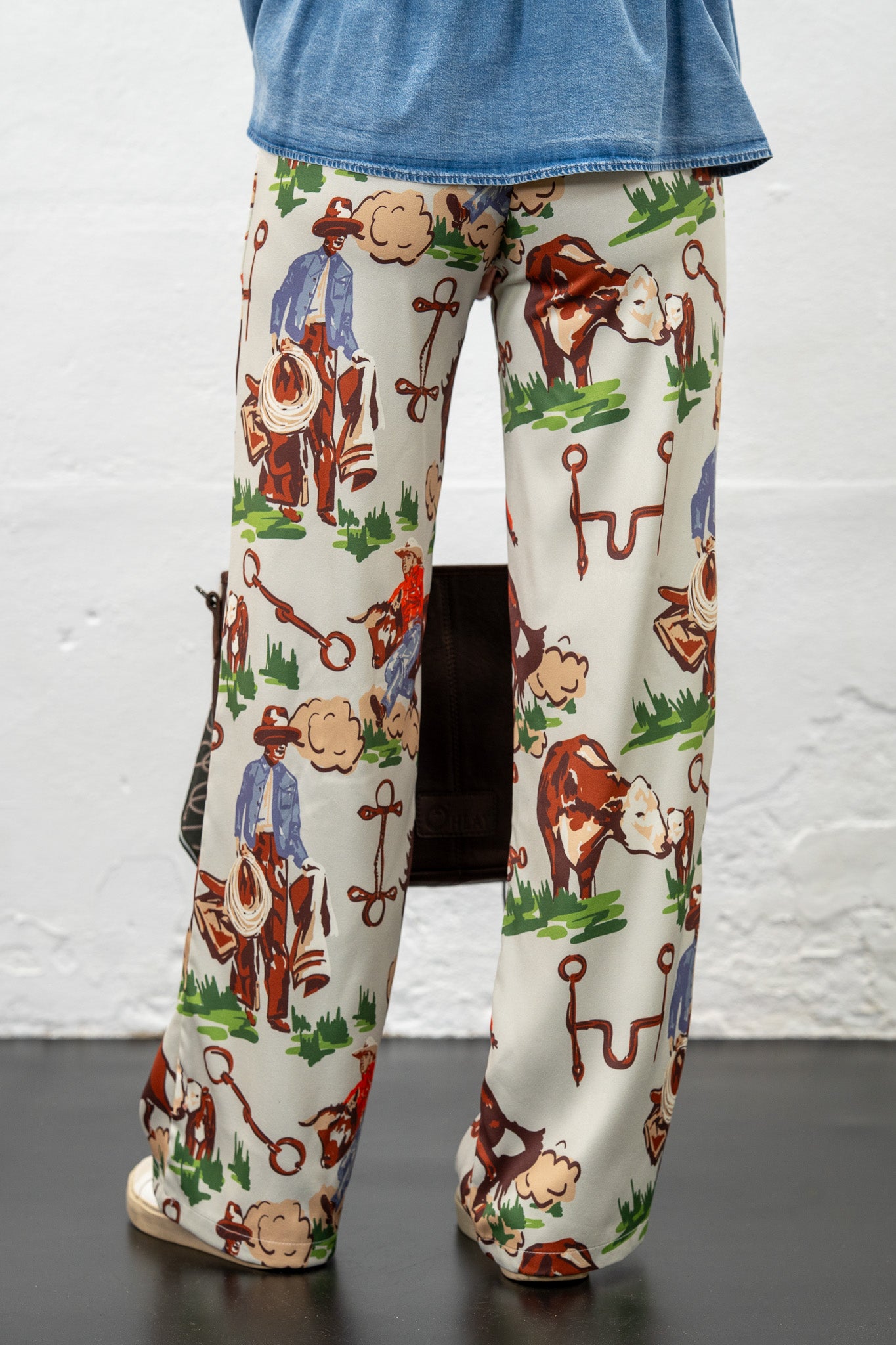 The Cattle Chaps satin trousers bring the rodeo vibes with a silky-smooth twist.