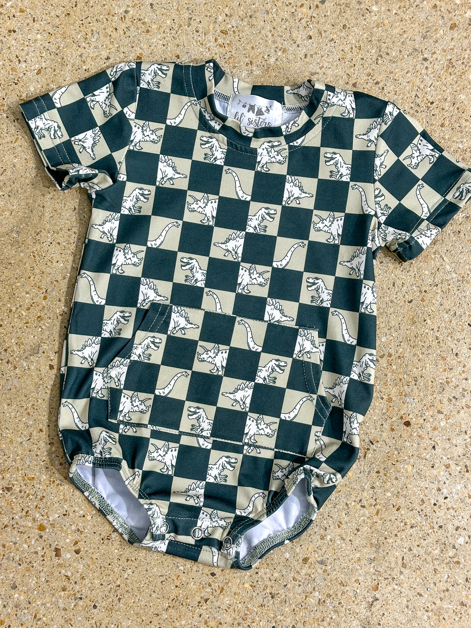 Introducing our Checkered Chomp Collection! Roar in style with this fun and playful onesie!