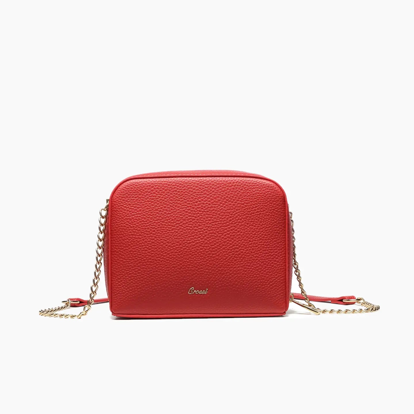 Our boxy mini bowtie purse is back in a striking new colorway. Composed of durable vegan leather and decorated with a stylish chain meshed strap. This crossbody is the perfect grab and go accessory to elevate your outfit, or keep it casual.