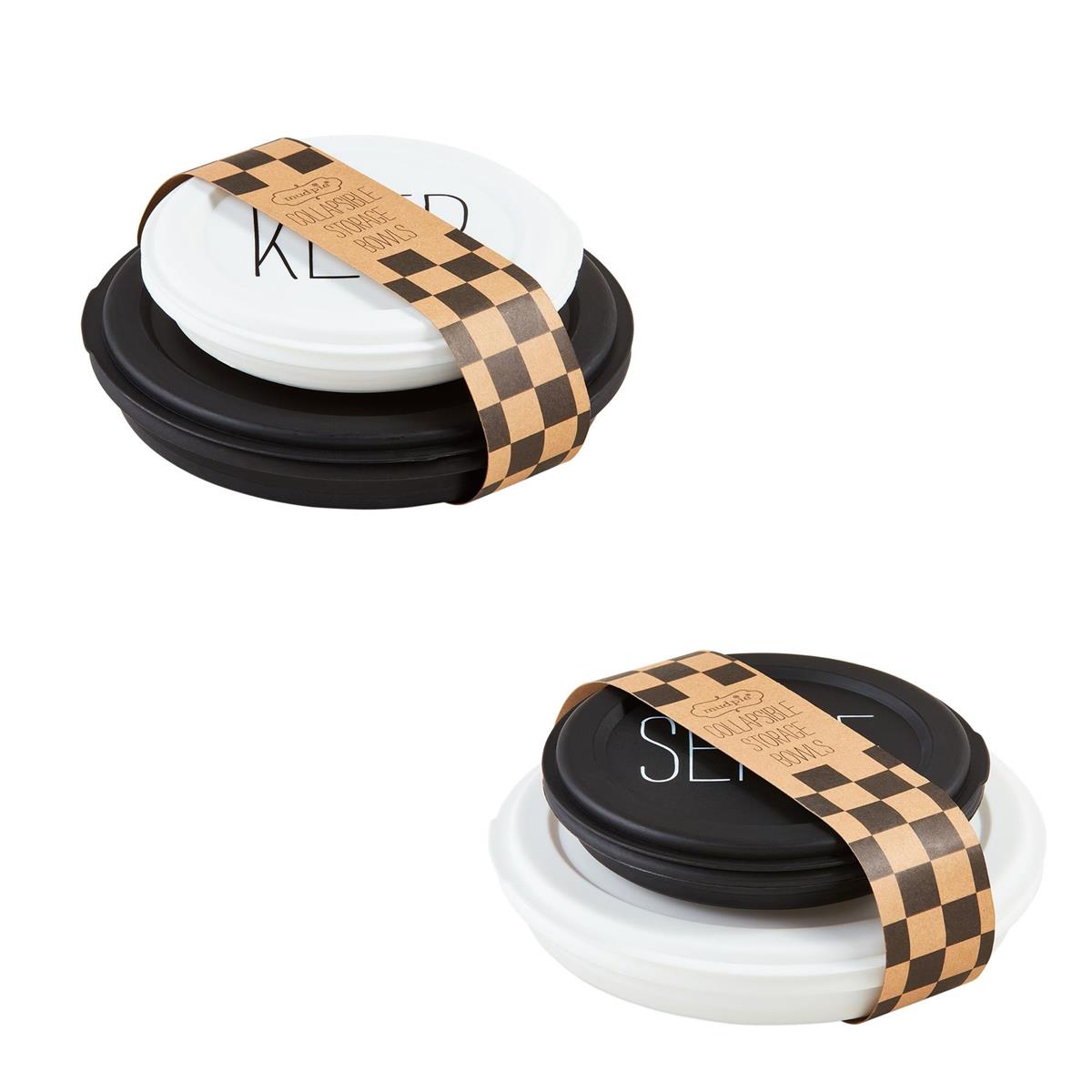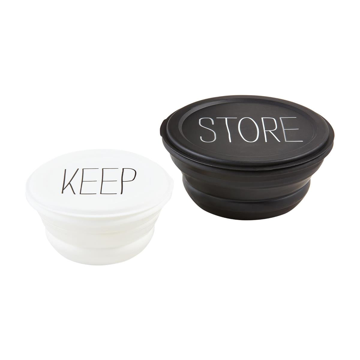Set of two collapsible silicone storage bowls with lids.