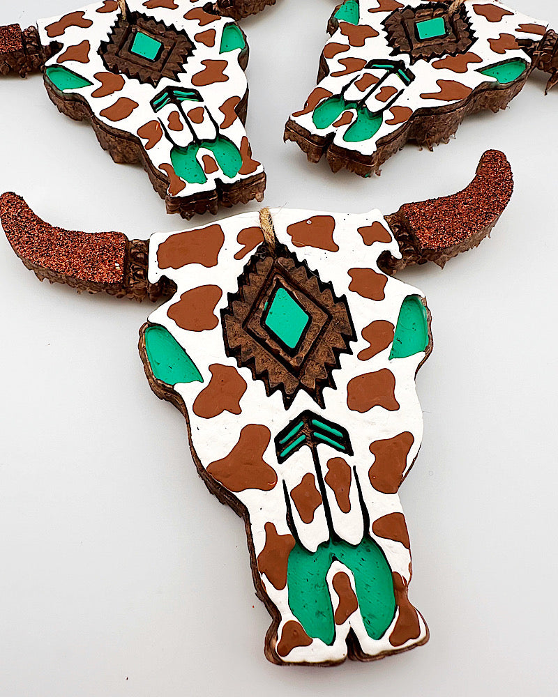 Cow Print Bull Skull Freshie