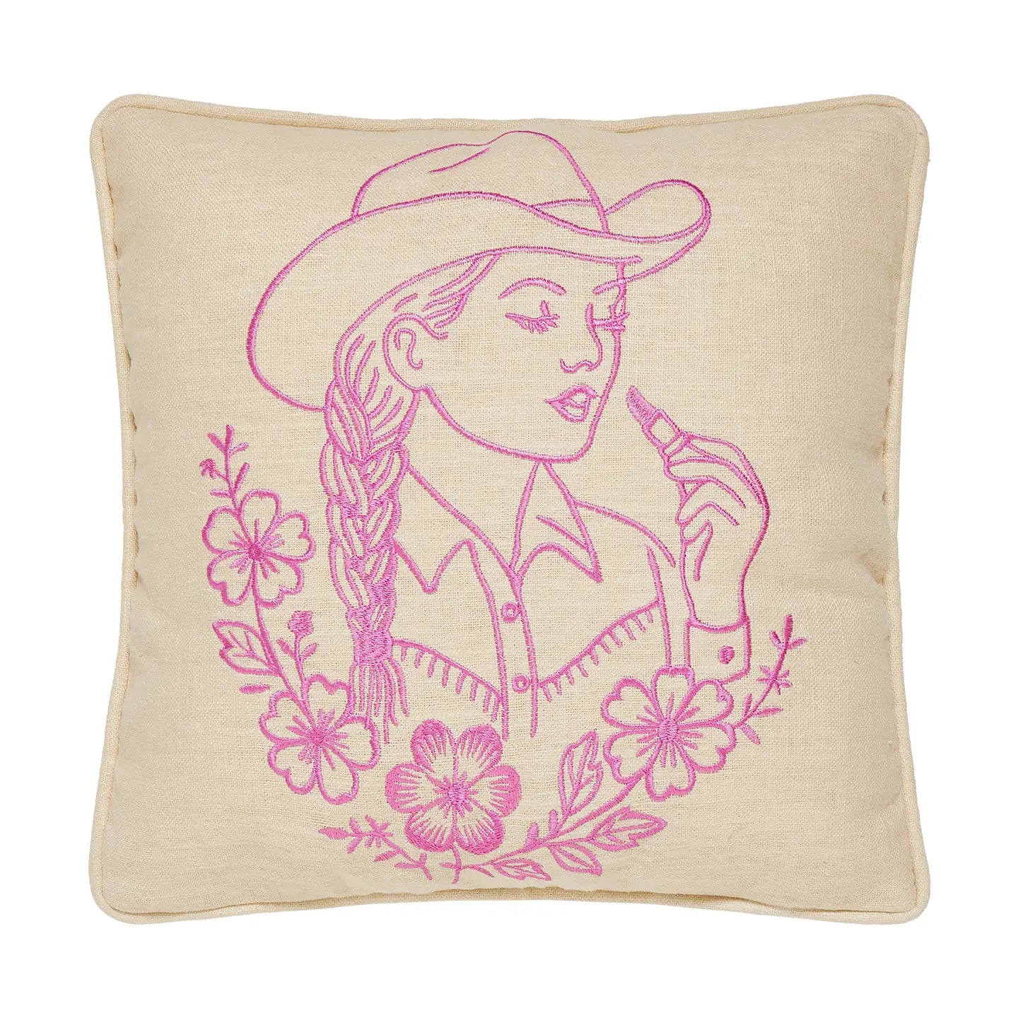 Cowgirl Embroidered Pillow