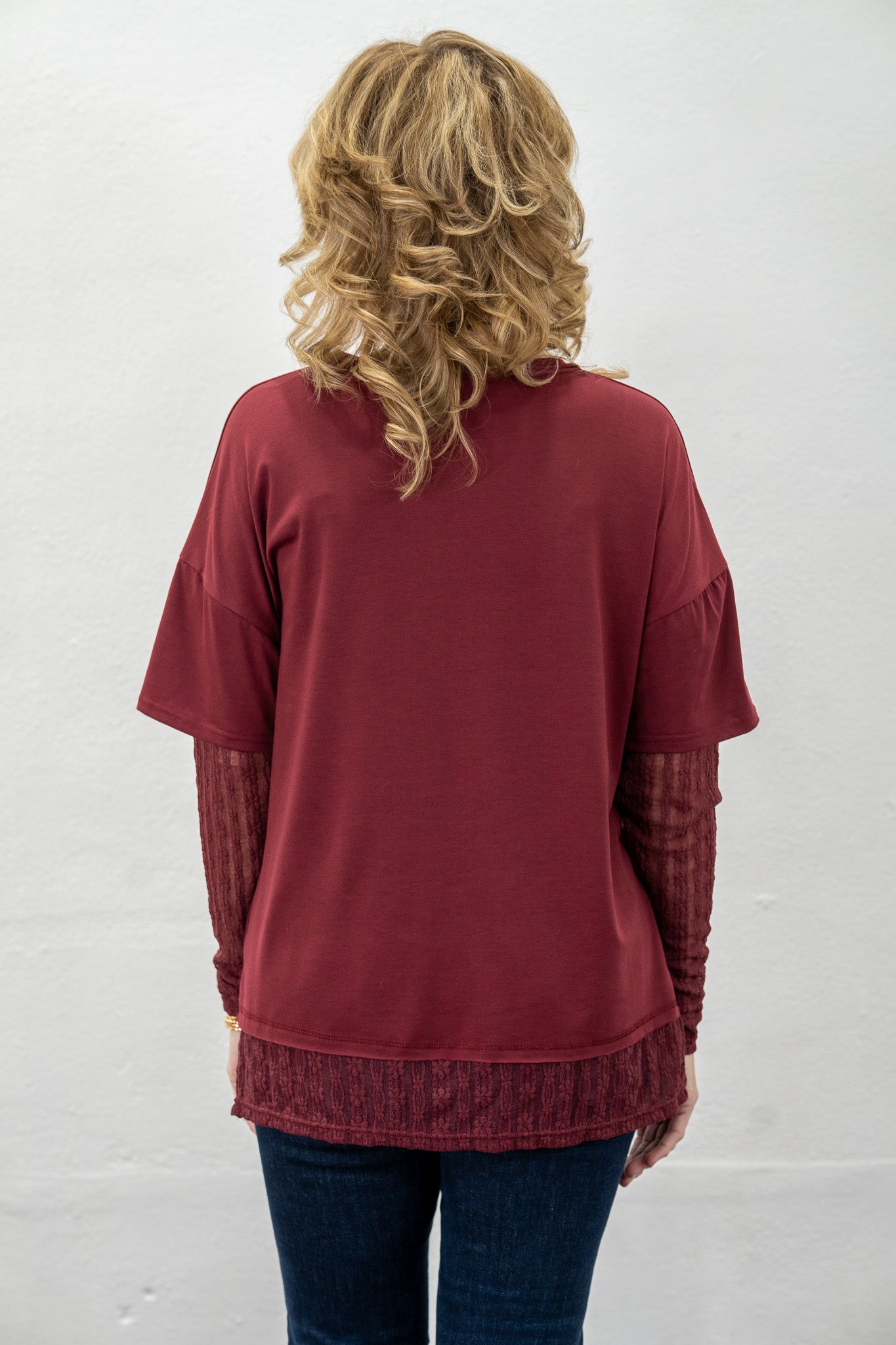 Featuring delicate lace sleeves and hem lining, that add beautiful texture and charm! Soft, flattering and easy to style, this top is comfy with a elevated, elegant touch!