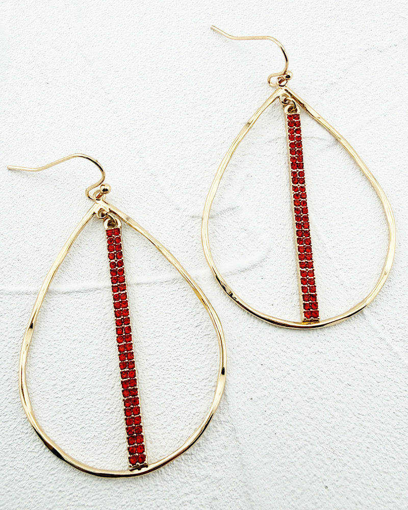 The classic teardrop elevated. Lightweight golden teardrops with a rhinestone bar dangle. French wire style, 2-1/4" drop.