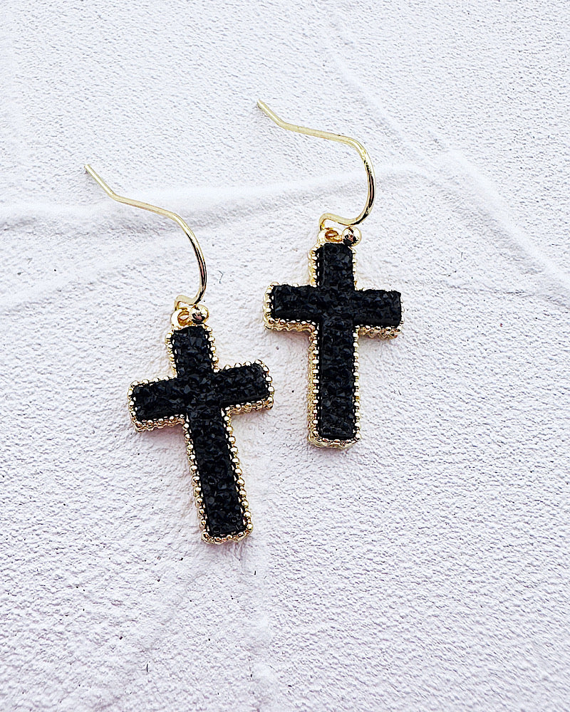 Ella Druzy Cross Earrings