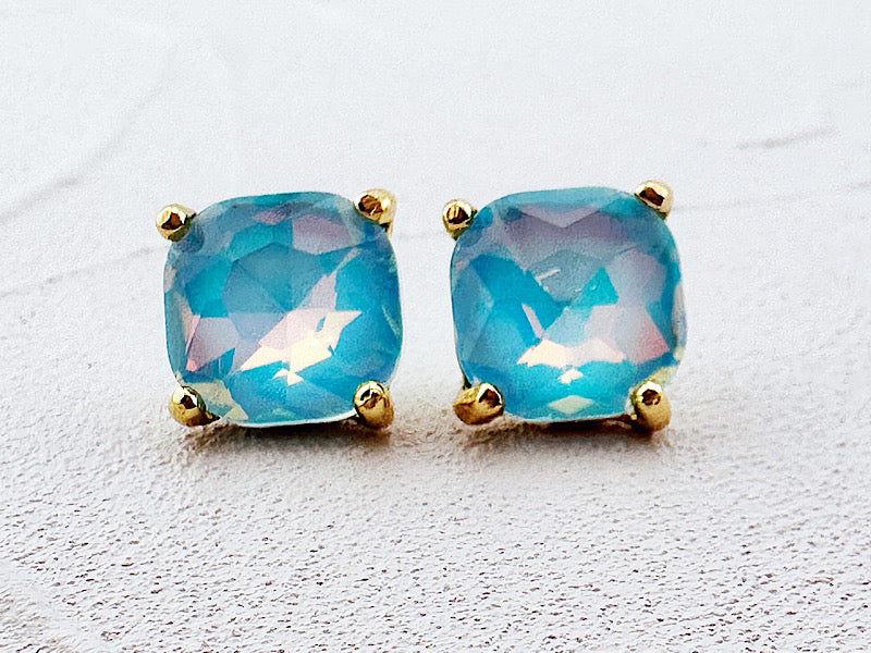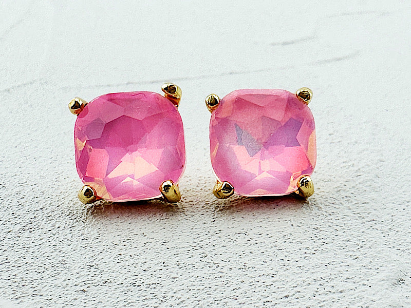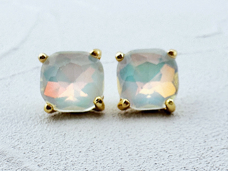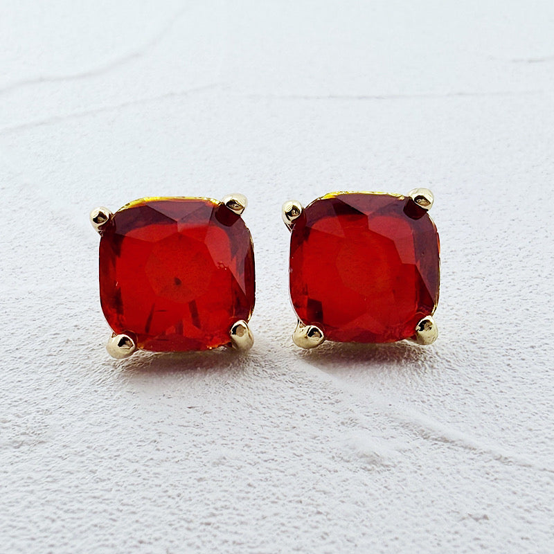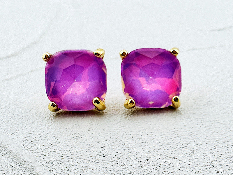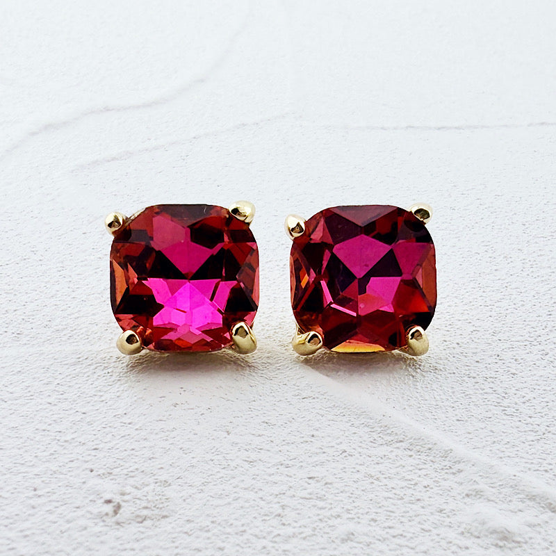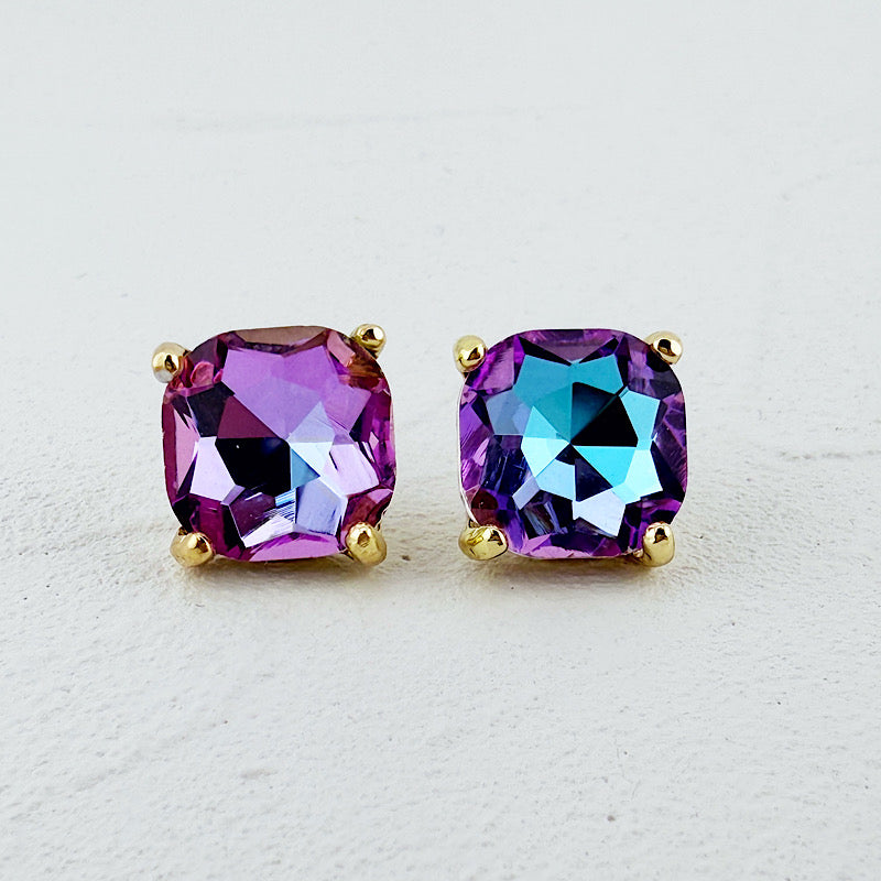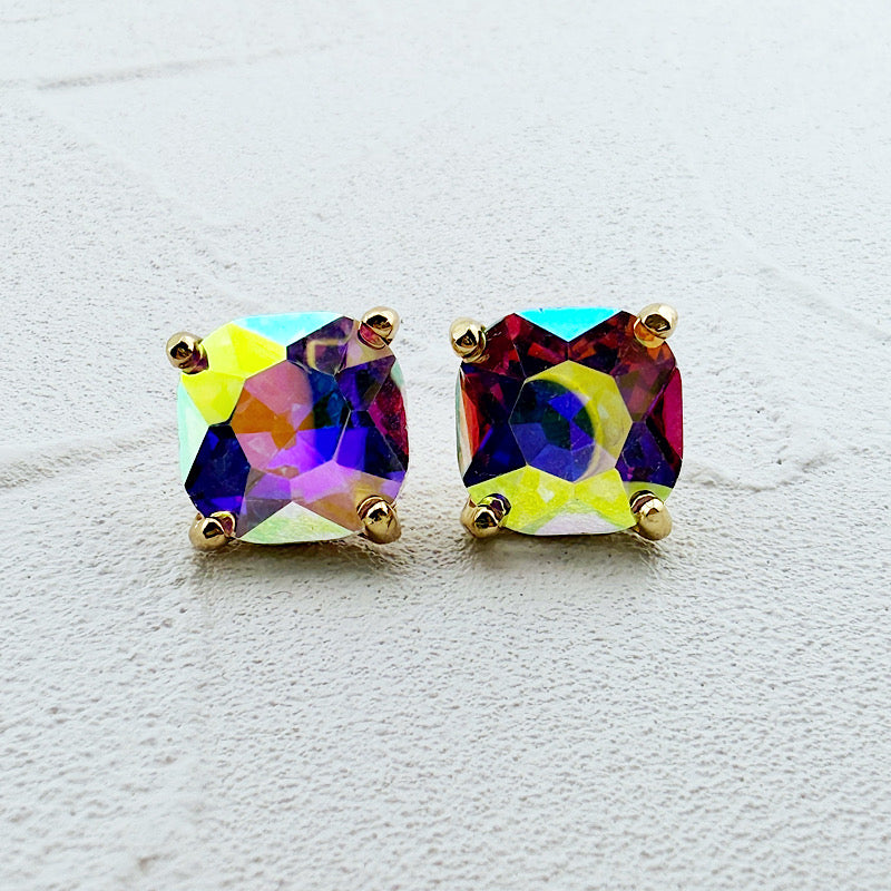 Ooh la la!! These studs are gorgeous. Just the right size with fiery, iridescent faceted jewels. Post style, 1/2". 14K gold plated.