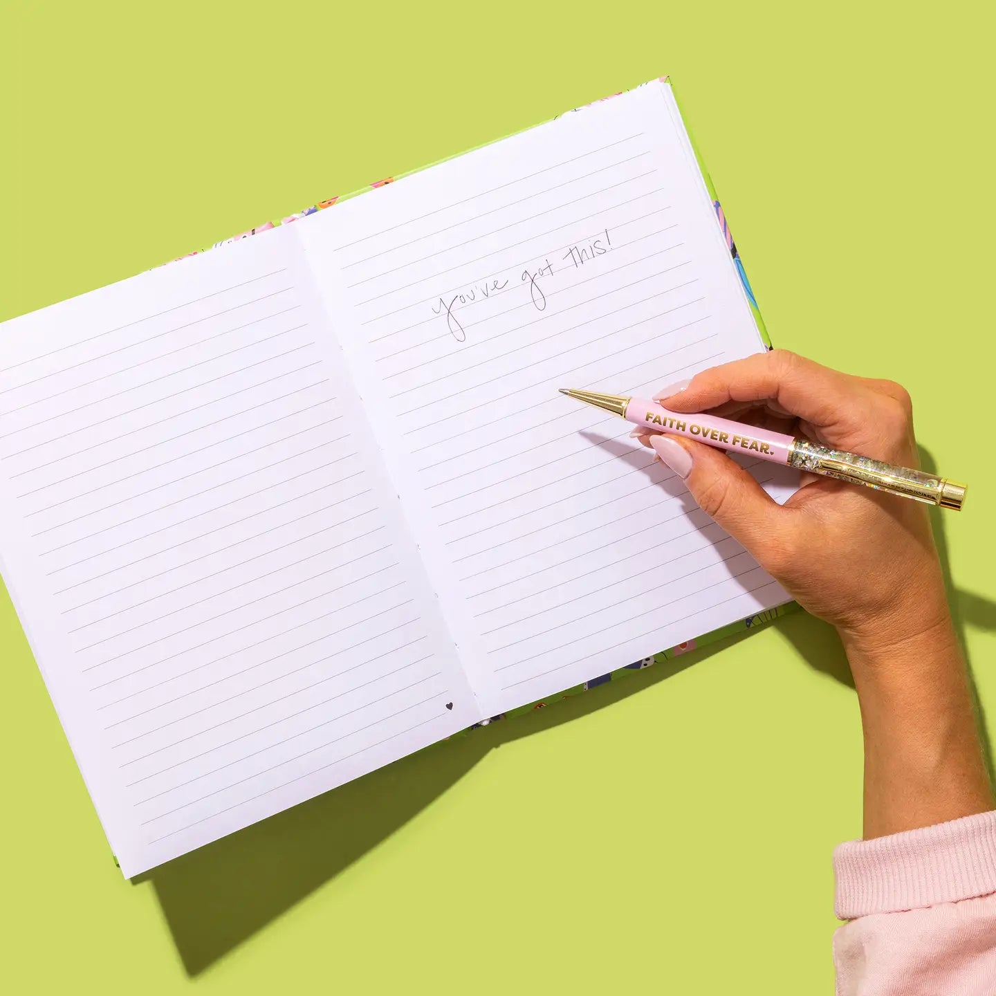 Make life a little more fun with our Confetti Pens! Filled with colorful confetti, adorned with gold metal accents and including the phrase "Faith Over Fear”, they look as beautiful as they write.