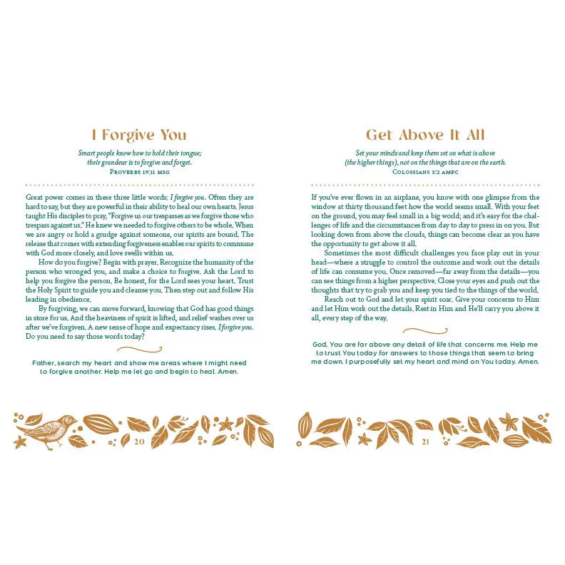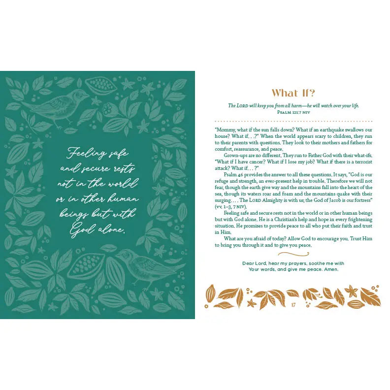 This beautiful devotional collection will engage your spirit with Bible wisdom and encouraging devotions. Each day's reading includes a scripture, faith-building reading, and prayer—all designed to draw you closer to your Father God through daily quiet time. This women's devotional is perfect for personal use or makes a thoughtful gift that will be cherished for years to come.