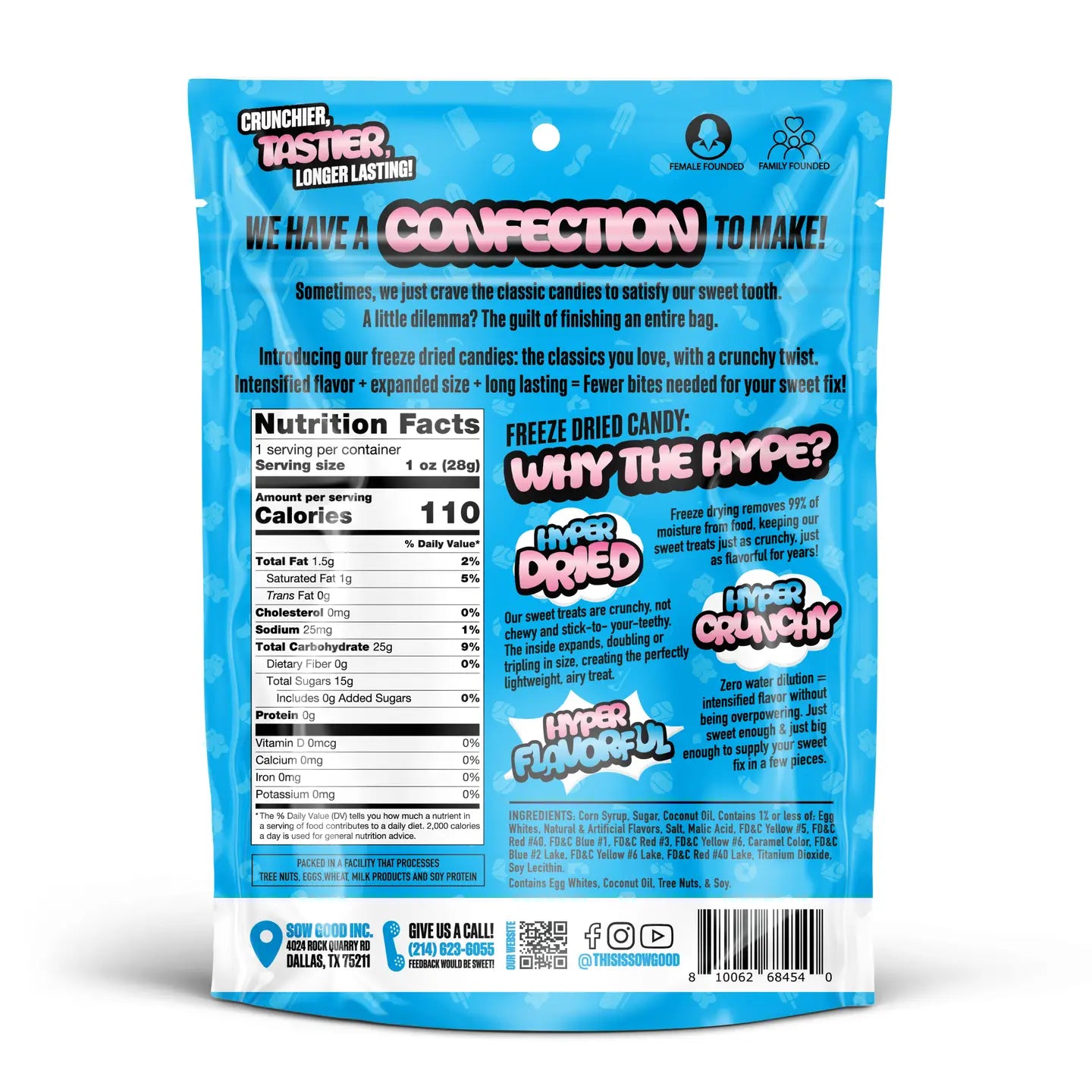 Salt water taffy like you’ve never had it before! These taffy bombs use the power of freeze drying process to turn the once chewy candy into a crunchy, lightweight, and flavor packed treat! And because they're more packed with flavor, expanded in size and last longer, you won't need as many to satisfy your craving!