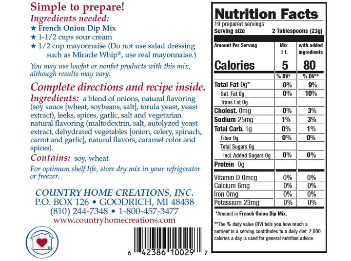 This mix is a special blend of onions and herbs coming together to give a hearty onion flavor. We believe it will become your new favorite chip dip, better than any of the ones you buy at the store. It tastes great with potato chips, pretzels, or vegetables.