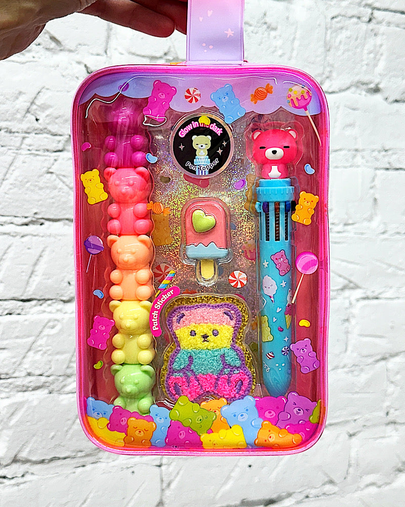 The most wonderful way to get creative. This set comes with many cute and fun items that can be stored in the pencil bag. We also added an adhesive patch to decorate the pencil bag or any other item.