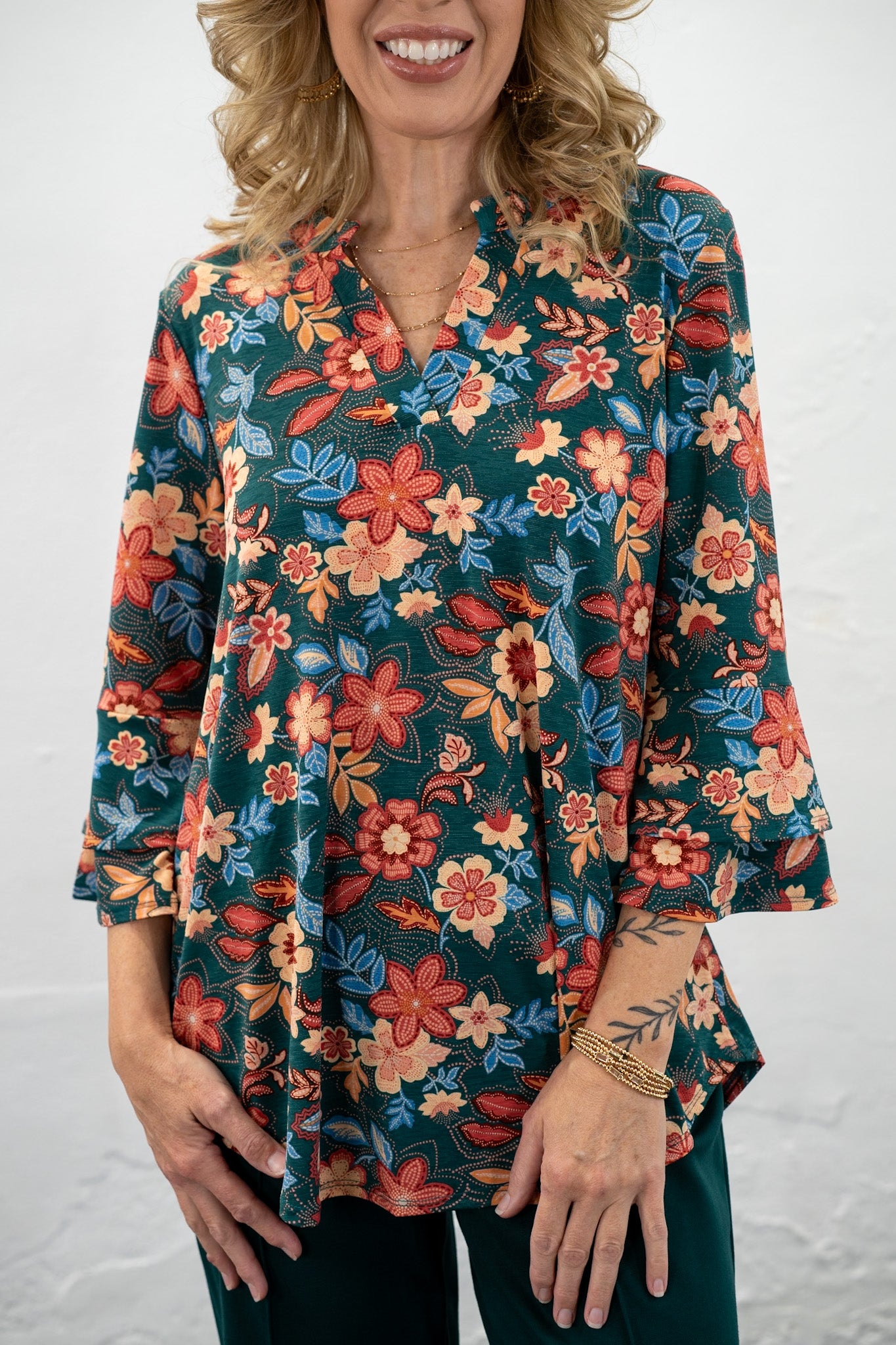 Another wrinkle-resistant tops... so bold and beautiful! This top is blooming with whimsical florals!