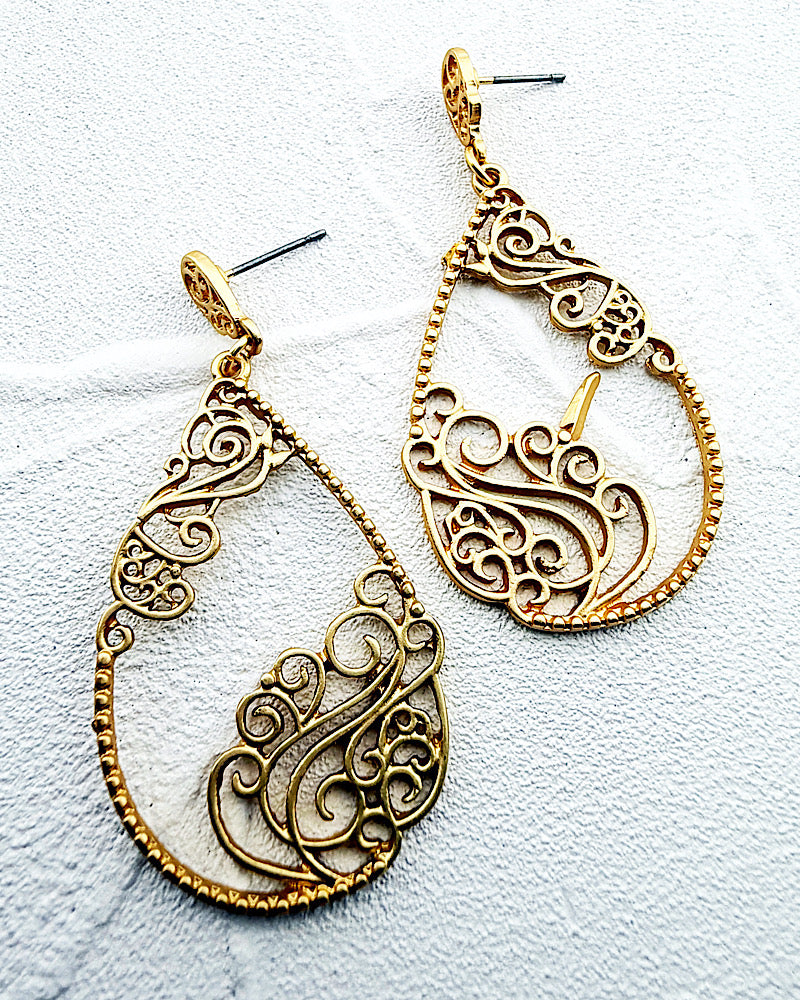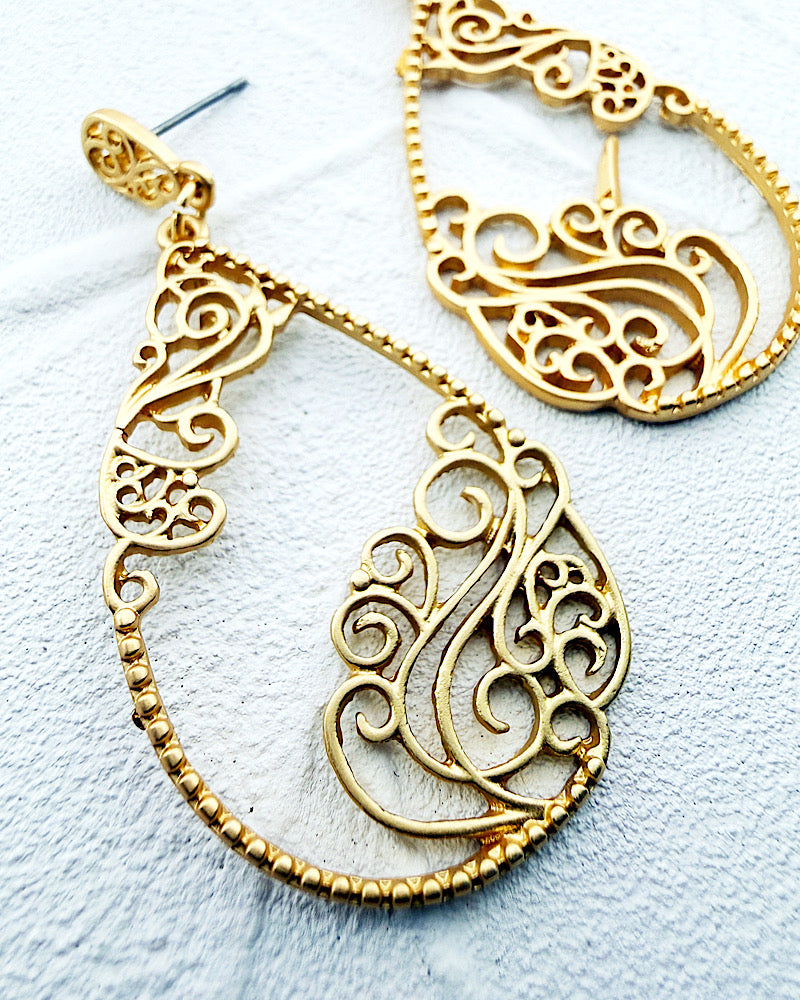 These vintage-inspired beauties are full of feminine flair. Matte gold finish & lightweight. Post style, 2-1/8" drop.