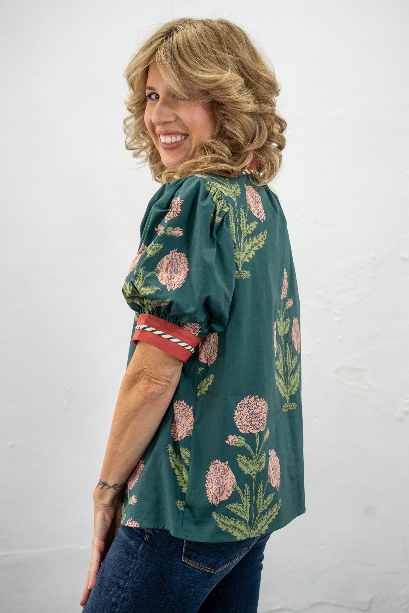 Step into fall with the Harvest Petals Top... featuring a striking floral design and rich autumn hues. This lightweight top is perfect for adding a touch of elegance to your seasonal wardrobe.