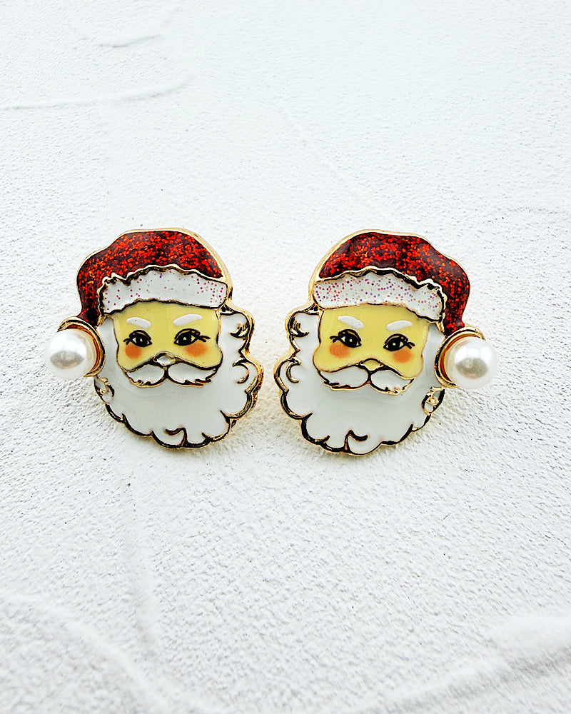Festive golden Santa faces with an enamel inlay, glittery accents & pearls. Post style, 7/8". Available in pink & red.