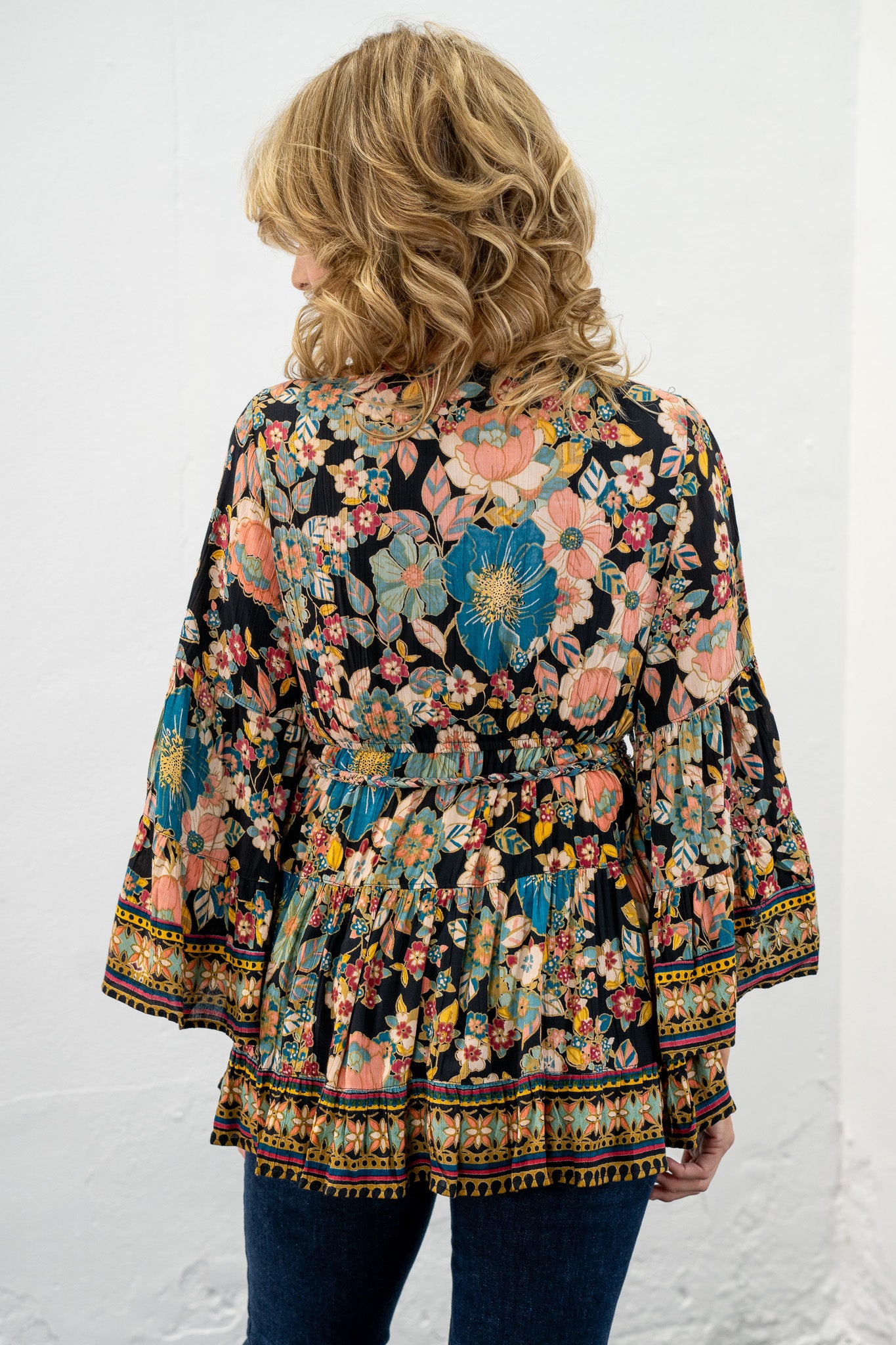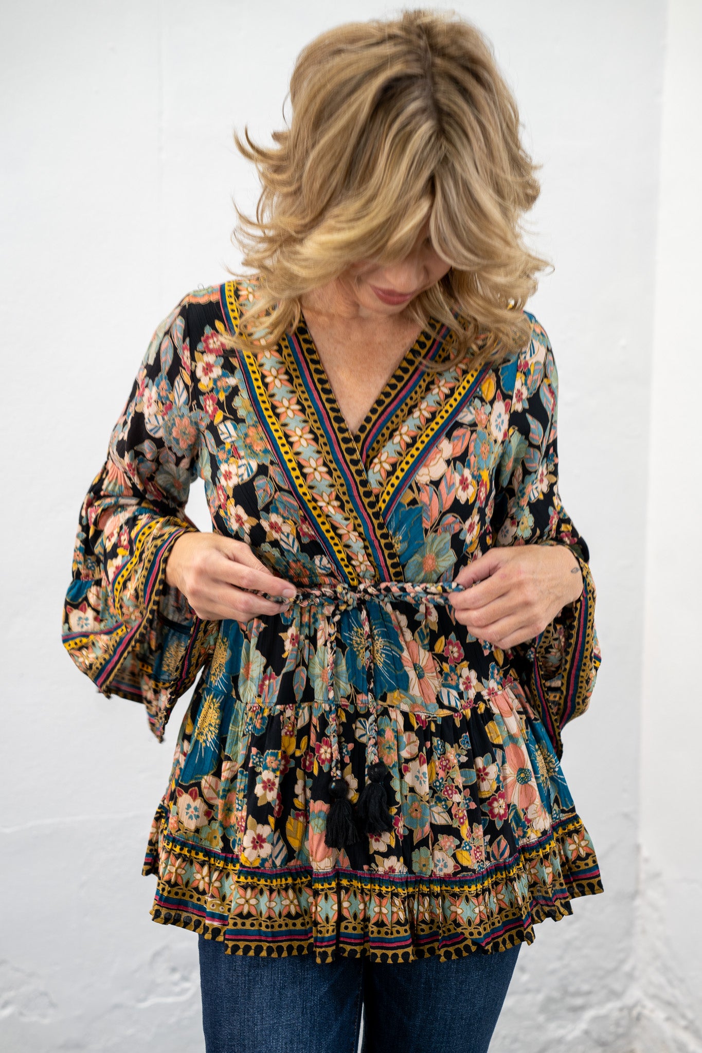 Just look at the details!!! Mixed prints, bell sleeves and the prettiest braided waist tie belt!