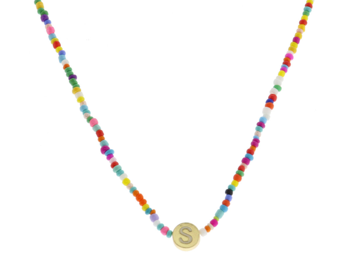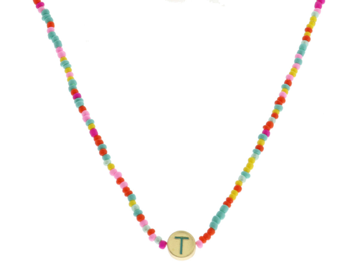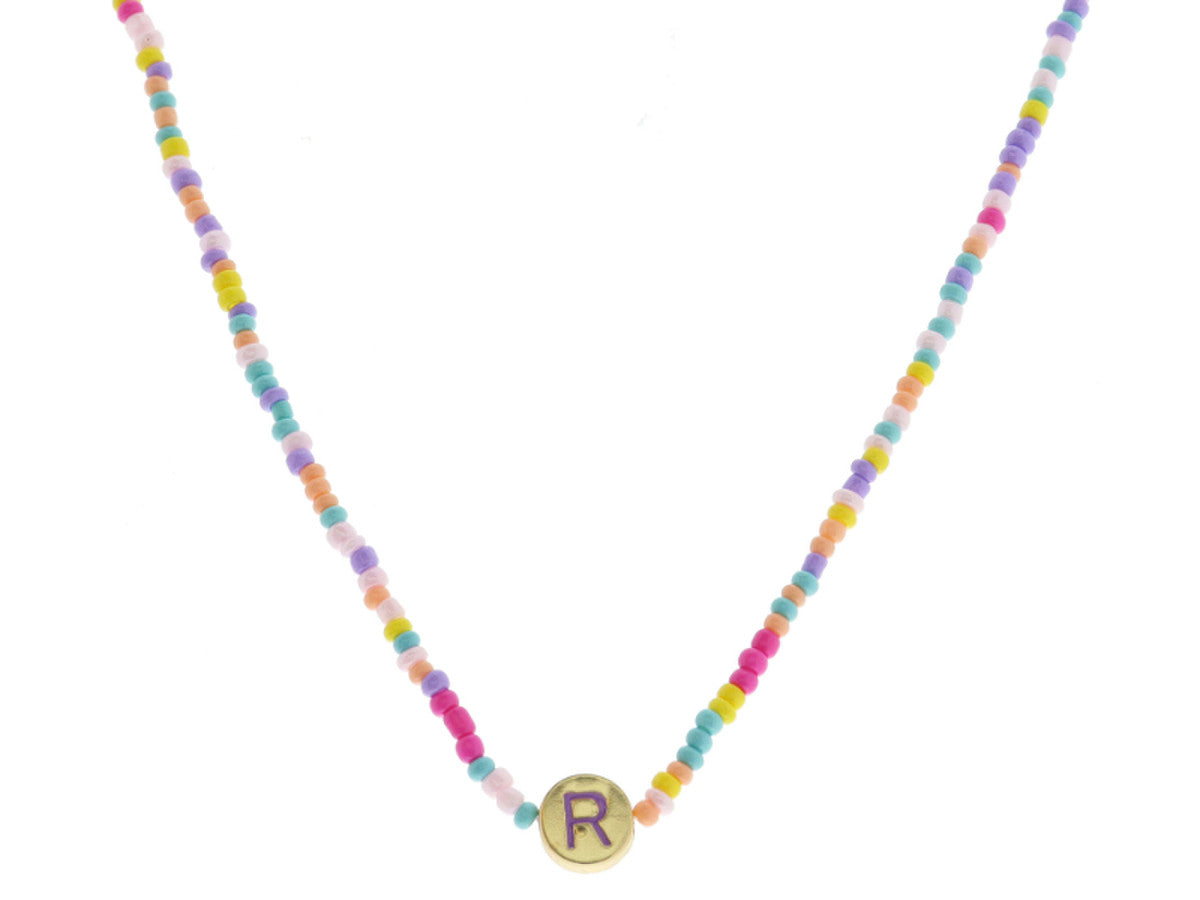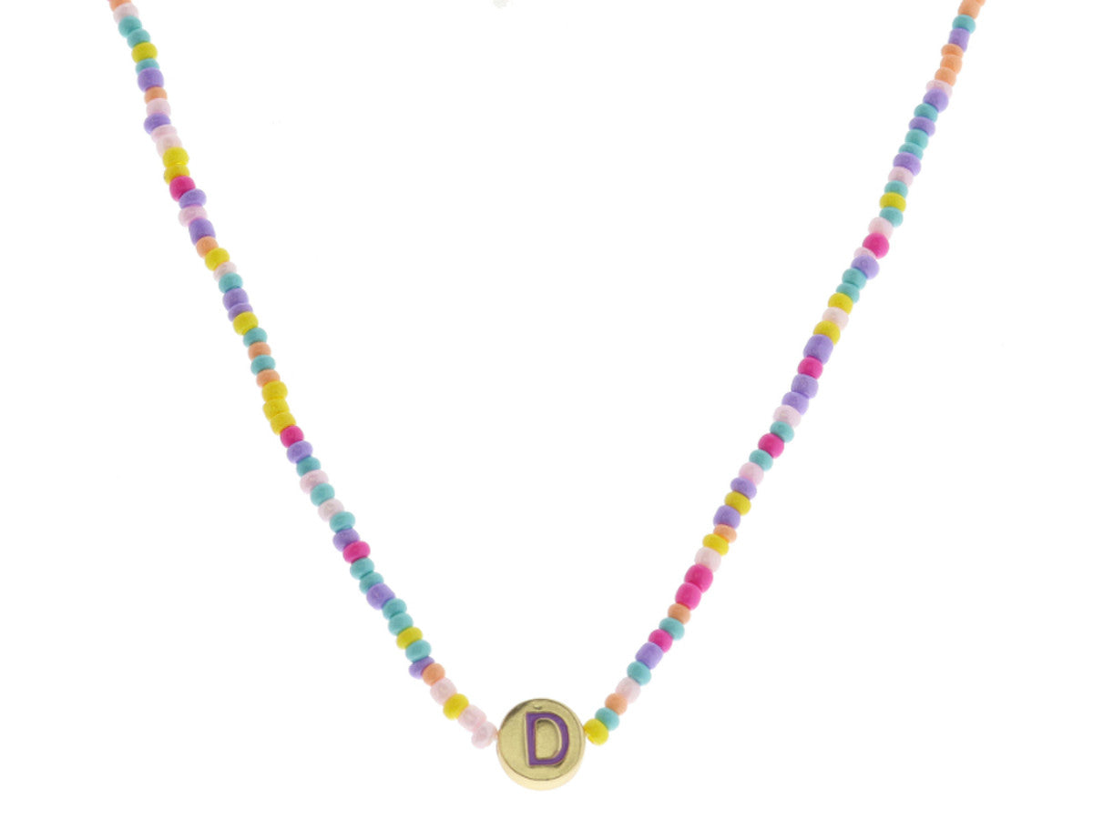Spoil that little girl with our rainbow beaded initial necklace. Looks cute worn alone or layered. Matte gold initial pendant. Adjustable from 15-17.5"