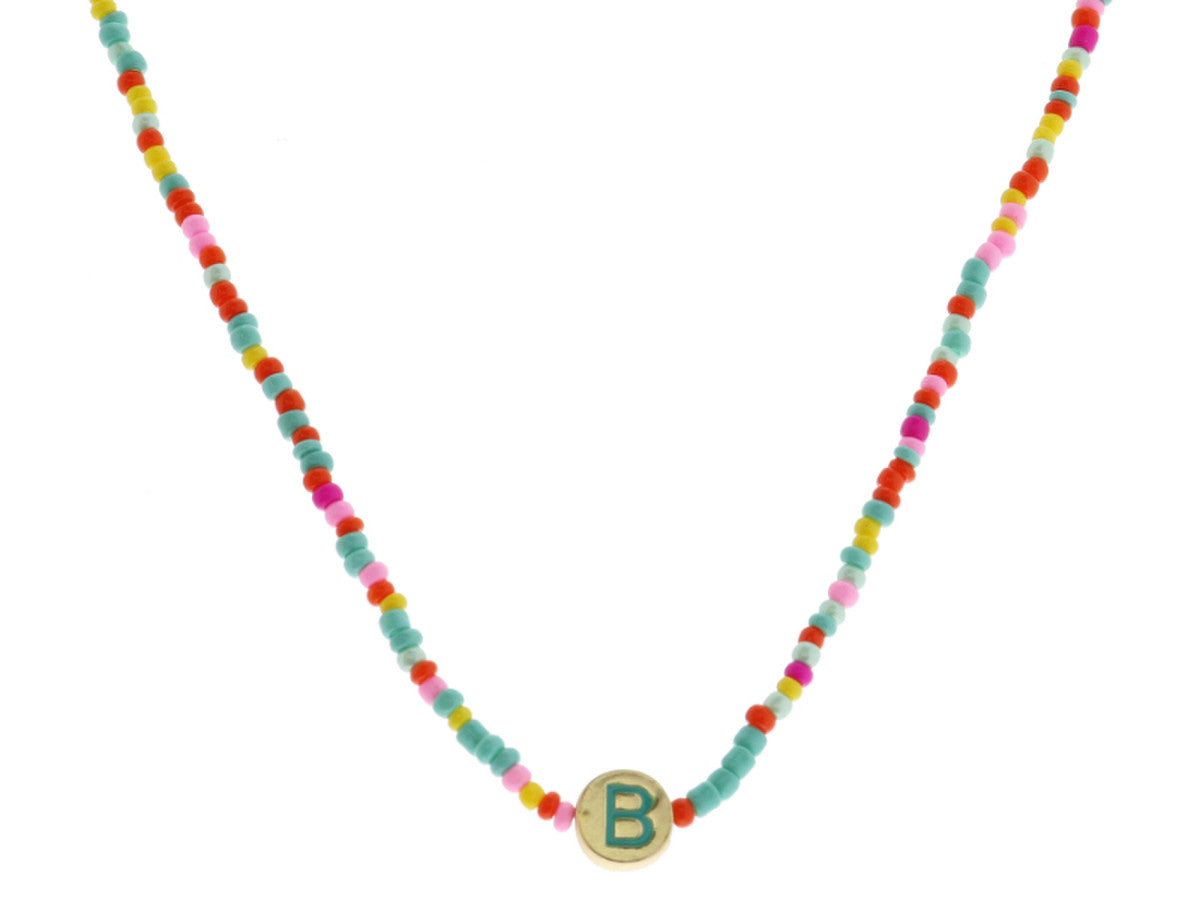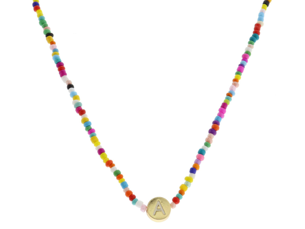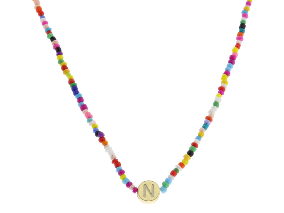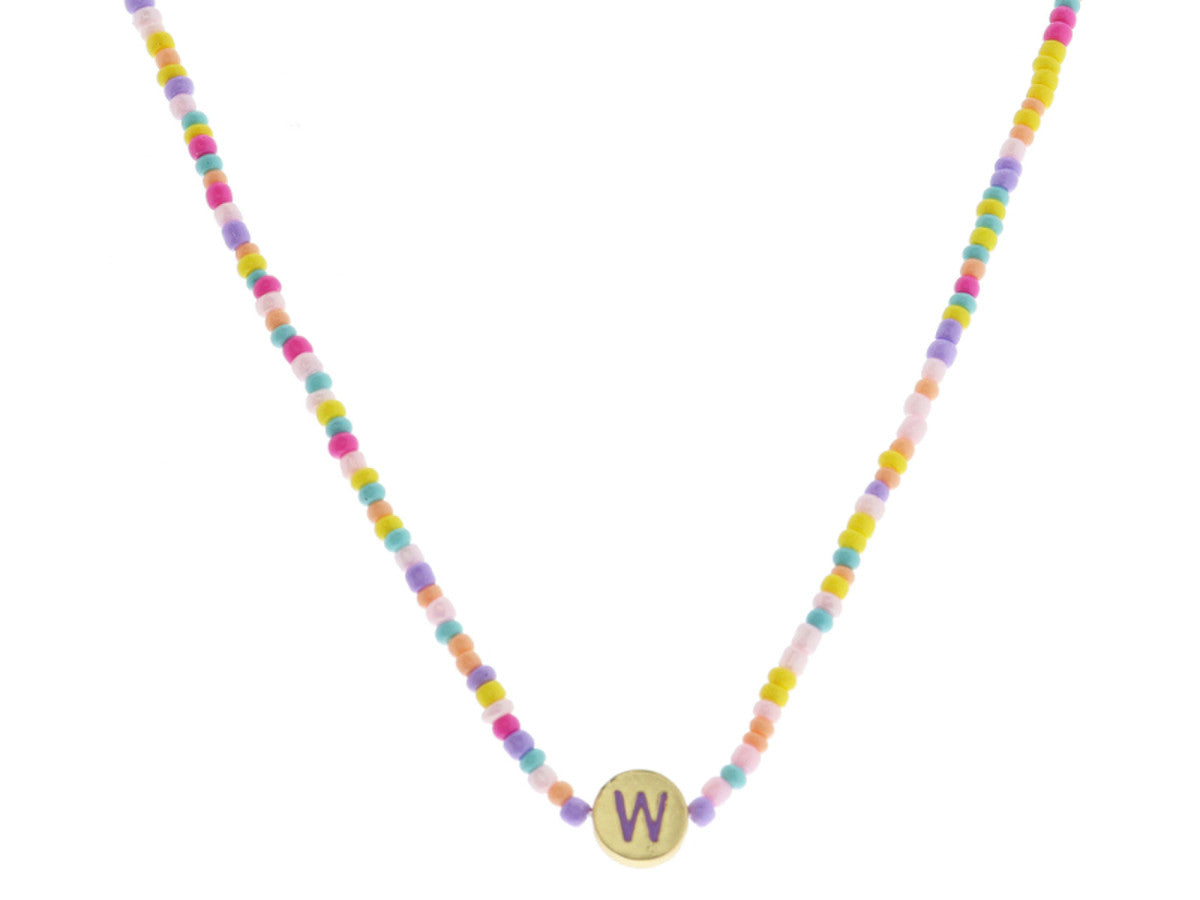 Spoil that little girl with our rainbow beaded initial necklace. Looks cute worn alone or layered. Matte gold initial pendant. Adjustable from 15-17.5"