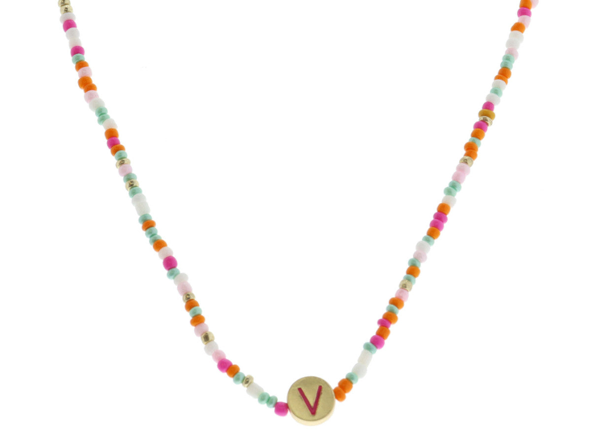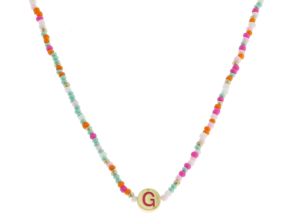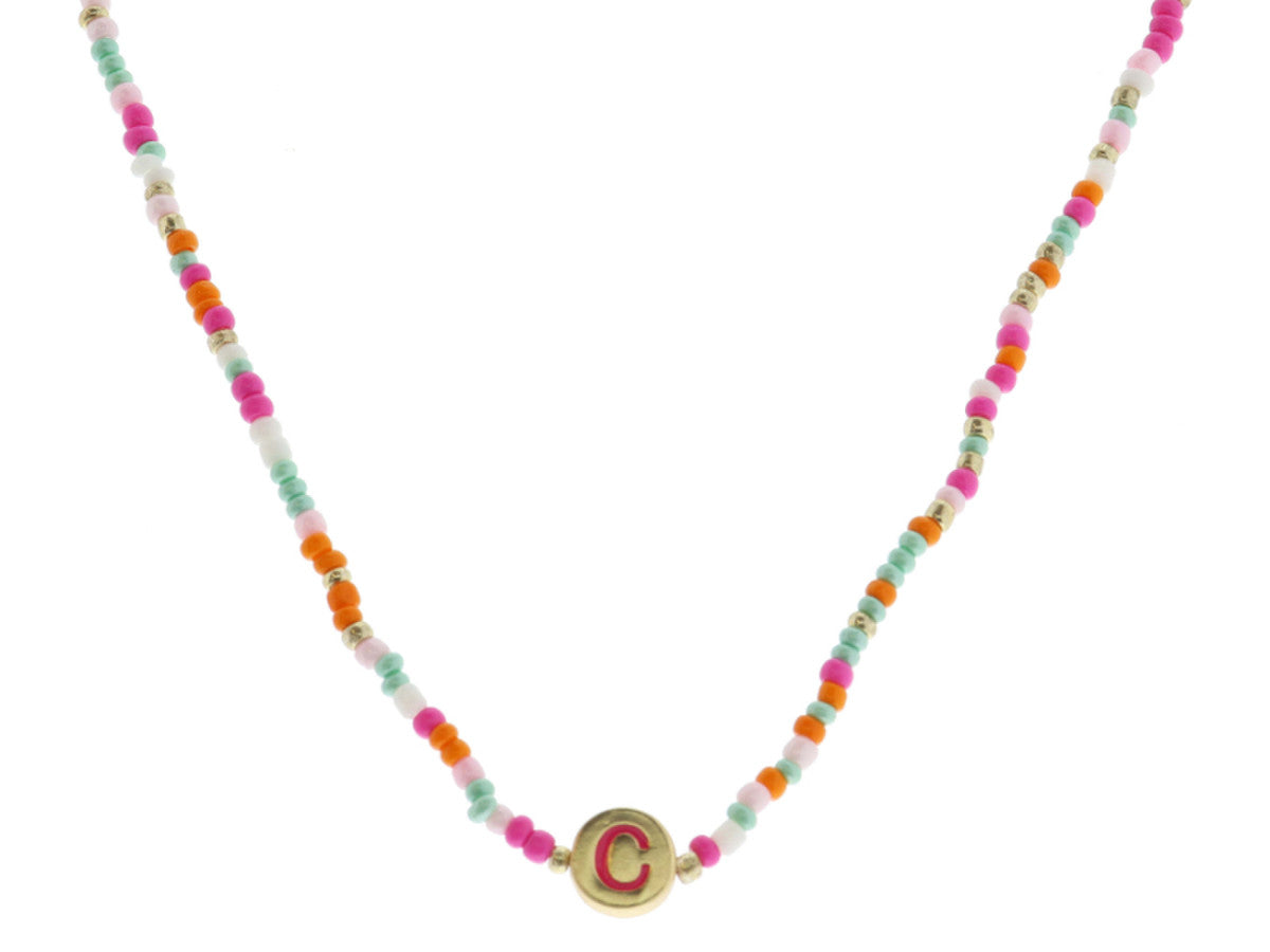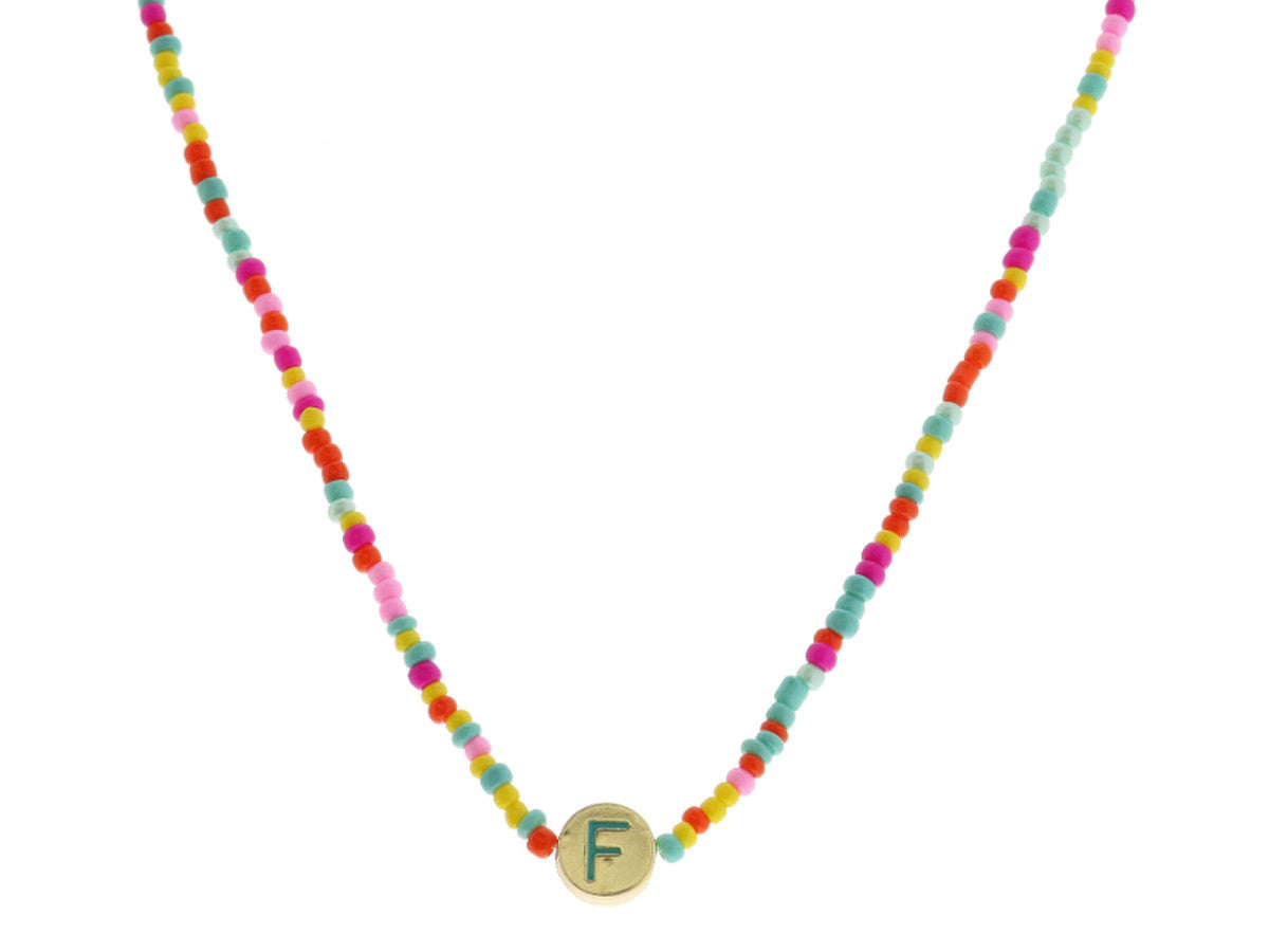 Spoil that little girl with our rainbow beaded initial necklace. Looks cute worn alone or layered. Matte gold initial pendant. Adjustable from 15-17.5"