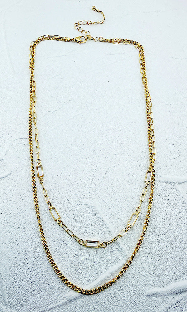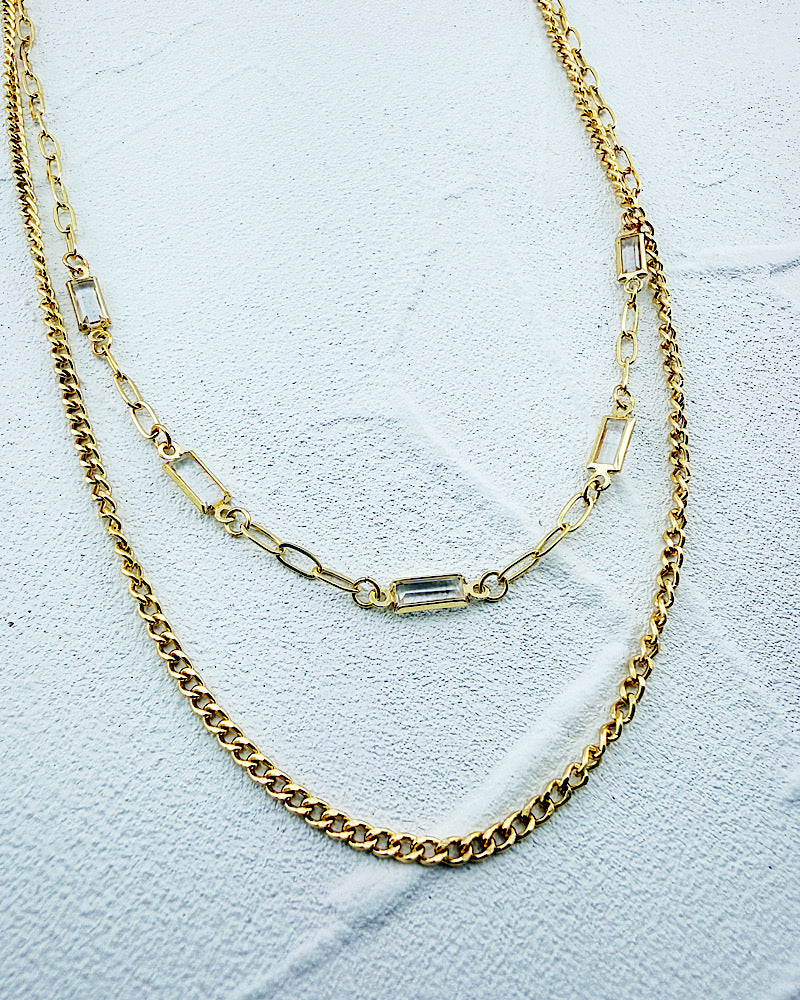 The Kylie necklace makes accessorizing a breeze. Lightweight dainty chain layers accented with faceted glass gems. Adjustable!