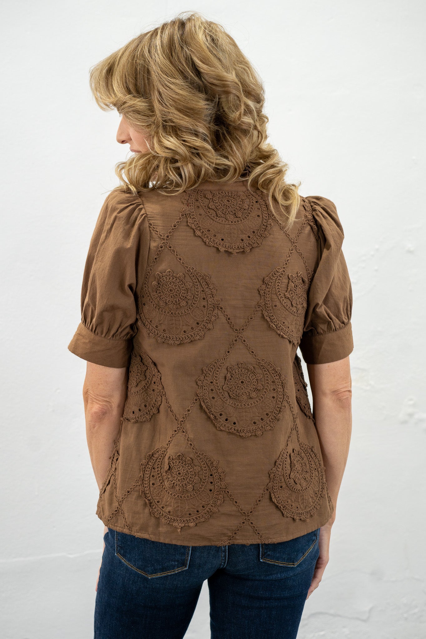 Liza Brown Crochet Patch Top