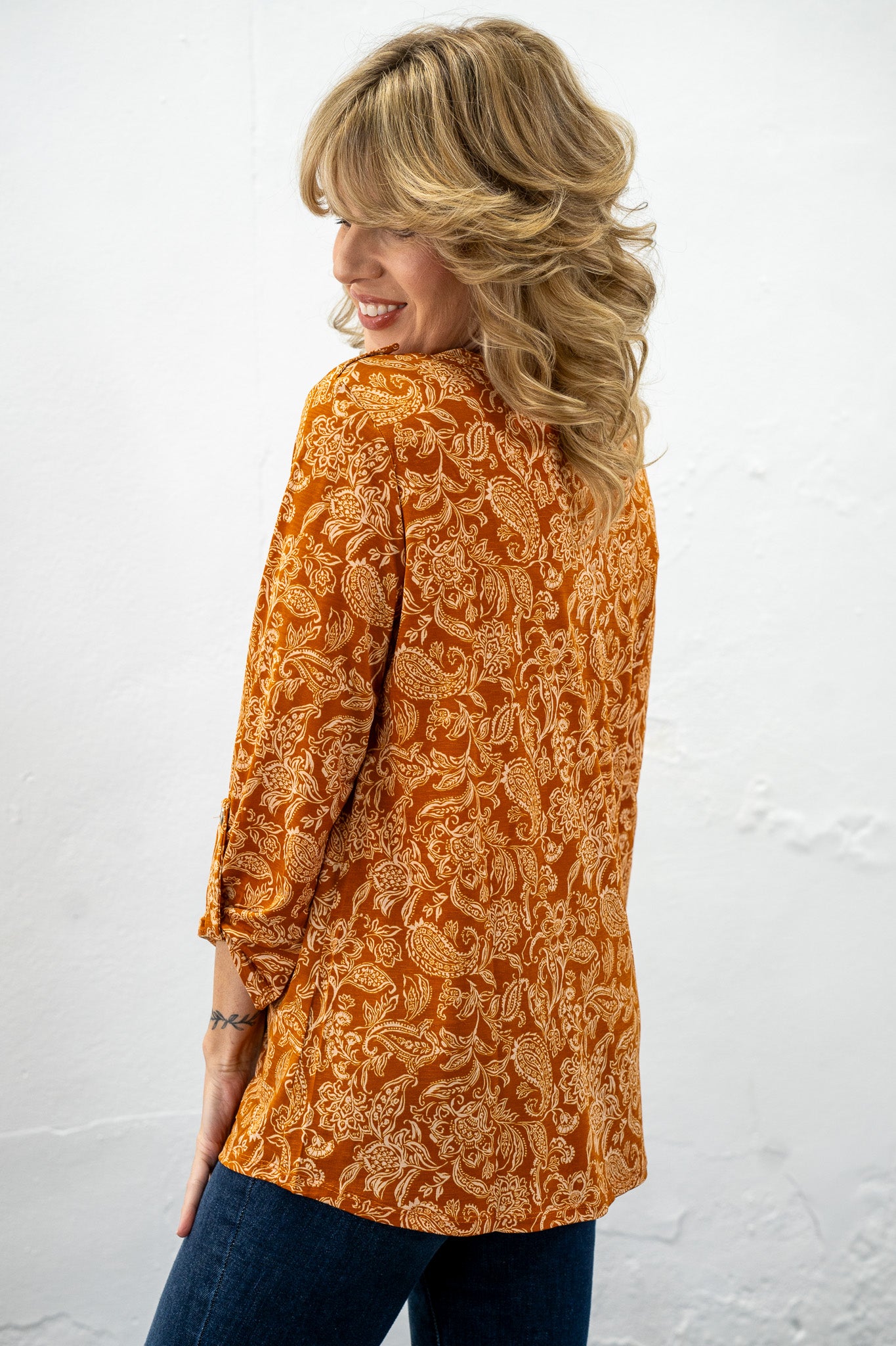 Super stretchy ALL over, buttons at the bust and 3/4 sleeves with a button strap (just for show!)