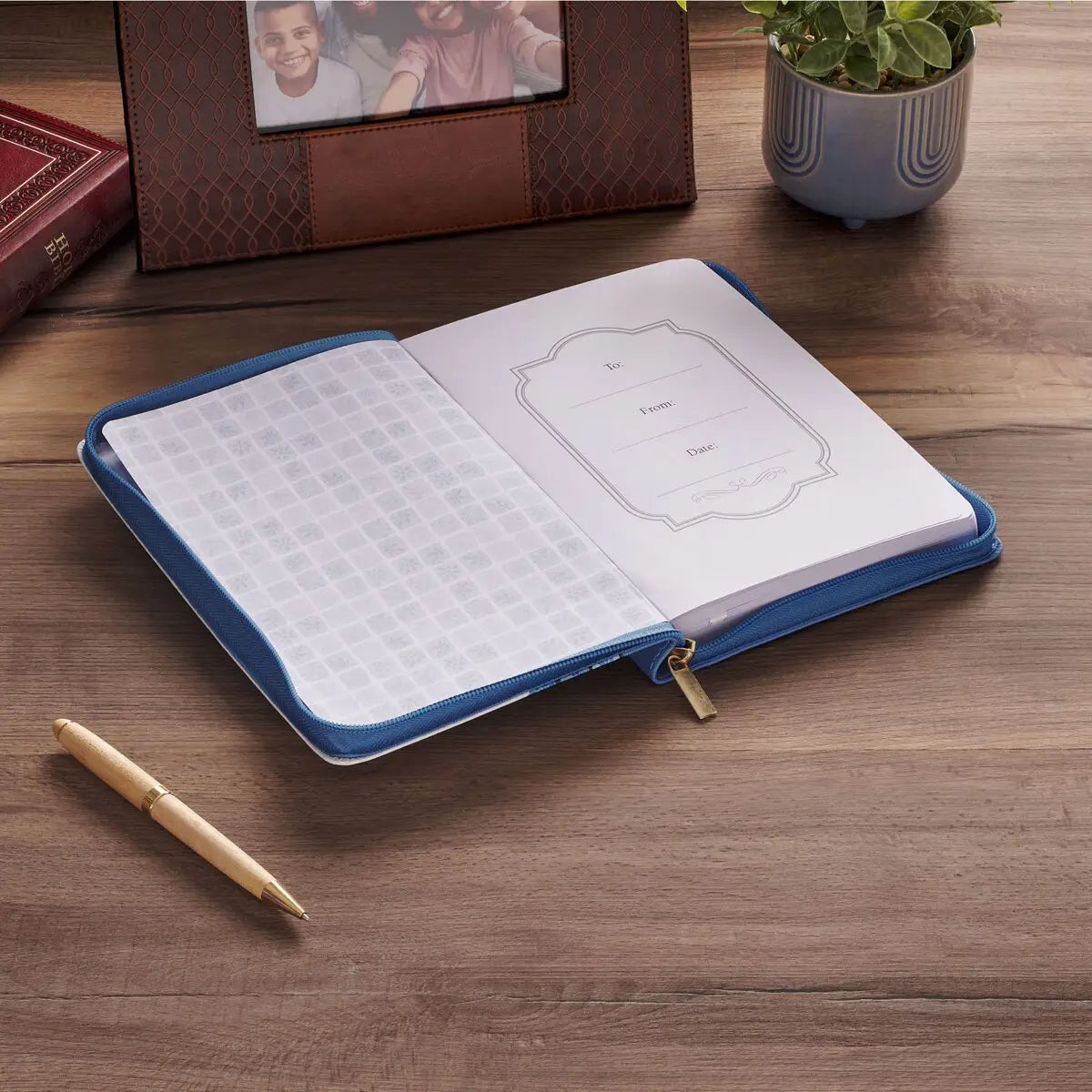 Embrace the beauty of God's love with the Love Blue Floral Tile Faux Leather Journal with Zipper Closure. This uniquely designed journal is the ideal companion for daily quiet time and is great for jotting down prayers, Scripture reflections, or insights during Bible study.