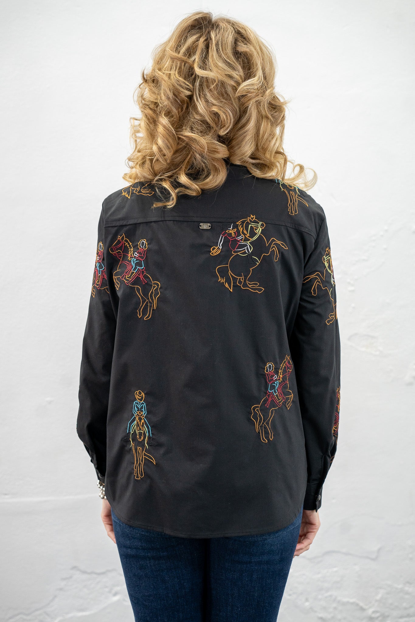 Mabel is full of cowgirl details.. embroidered all over (front AND back) and includes black pearl snaps down the front!