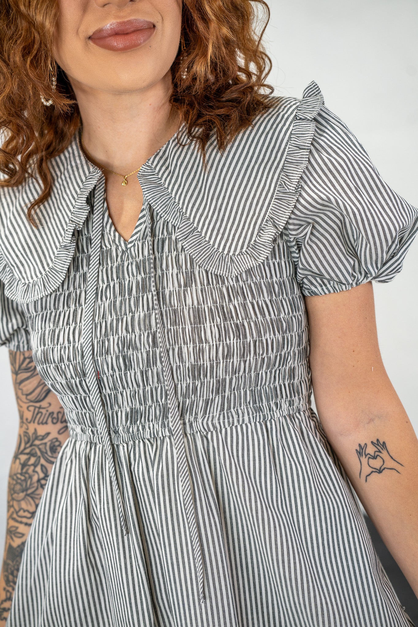 Mabel is so sweet!! A lil vintage vibes.. we love the Peter Pan necklace and easy fit!