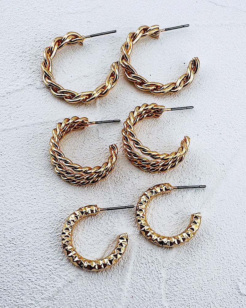 Our hoop trios are an essential to any wardrobe. The perfect size to accentuate any face shape. Lightweight & easy to wear. Available in gold & silver. Sizes range from 3/4" to 1"